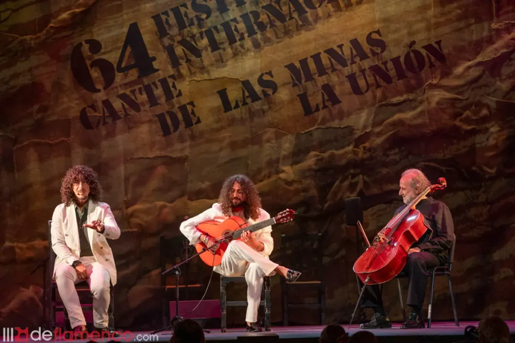 Tras el pregón, la gala de ganadores transformó el escenario en un escaparate del talento flamenco más reciente, con artistas que ya han inscrito su nombre en la historia del festival. El trovo abrió la noche con los repentistas Iván ‘El de La Escucha’ y Juan ‘El Baranda’, ganadores del VI Certamen Internacional de Trovos ‘Pascual García Mateos’.