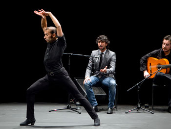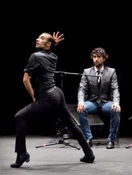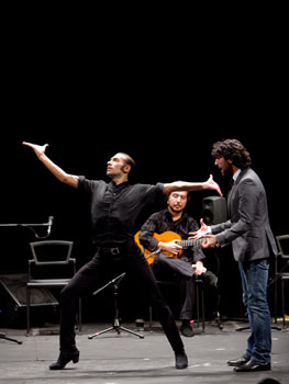 Baile: Israel Galván, Cante: Arcángel, Guitarra: Alfredo Lagos The series Jueves Flamenco de Cajasol closed this week with Israel Galván’s show “La Edad de Oro”. Galván is is the eternal iconoclast, prodigy and caricature of this art-form, and has, in only a few years, become a classic. Many people find not a shred of flamenco in his work, however, from my point of view, what was presented last night was quite a rundown of flamenco cante, guitar and dance of high quality interpreted by three young artists who are present and future heavyweights of this artform. With a packed theater, you could feel the complicity between the audience and the dancer even before the curtain went up. The staging was minimal, three chairs and nothing more, in keeping with the “Edad de Oro” or golden age of flamenco when few props were used. A repertoire of fourteen cantes, from pregrón to malagueña, passing through soleá, siguiriya, farruca, martinete and the bulería fiesta finale. In actual fact it was only small tidbits in each case, but that was all that was needed to pinpoint the character of each form. Galván is now a universally recognized artist, with his own language now mostly understood and appreciated by the general public. His every move is answered with “ole”, every twist and turn, every cubist pose. The people love his sense of humor. And this particular show is well-broken-in as he has been touring the world with it for several years, although that doesn’t close the door to improvisation since his rhythmic capacity and knowledge allow him to react to the moment. There were some memorable moments…in the soleá, tangos de Triana, farruca… His concept of accompanying the cante and his footwork phrasing are impressive, although his dancing has become so installed in the public eye that he even has followers and imitators, and this might indicate the need for some rethinking. The show makes room for both cante and guitar as soloists. Alfredo Lagos, without a doubt one of the best guitarists of the current scene, plays with clean sound, good rhythm and tender loving care, rich in harmonic concepts and dialogue with the cante. He knew how to put the guitar in just the right place, with elegance and musicality. Arcángel’s voice, although in many ways, both aesthetically and conceptually, the antithesis of Fernando Terremoto’s, the original singer for this show, was able to adapt to the work and leave his mark, because this singer has a strong artistic personality. His best moment was in a tribute to Terremoto in the malagueña de Mellizo where he polished up the cante with exquisitely sweet gemlike details. Overall it was a fine recital with moments of greatness from each of the three performers who once again demonstrated that the Seville audience is enthralled with their dancer. But will Galván be able to push the envelope even further? Let’s hope so.