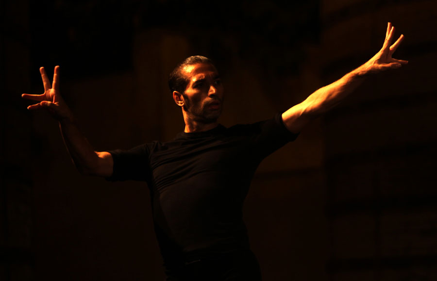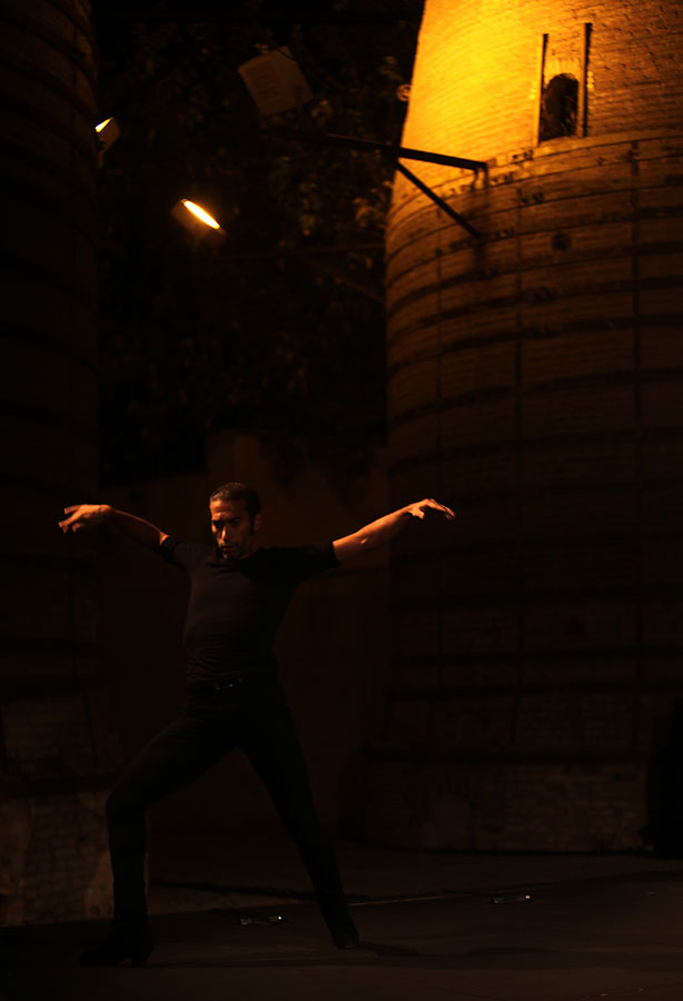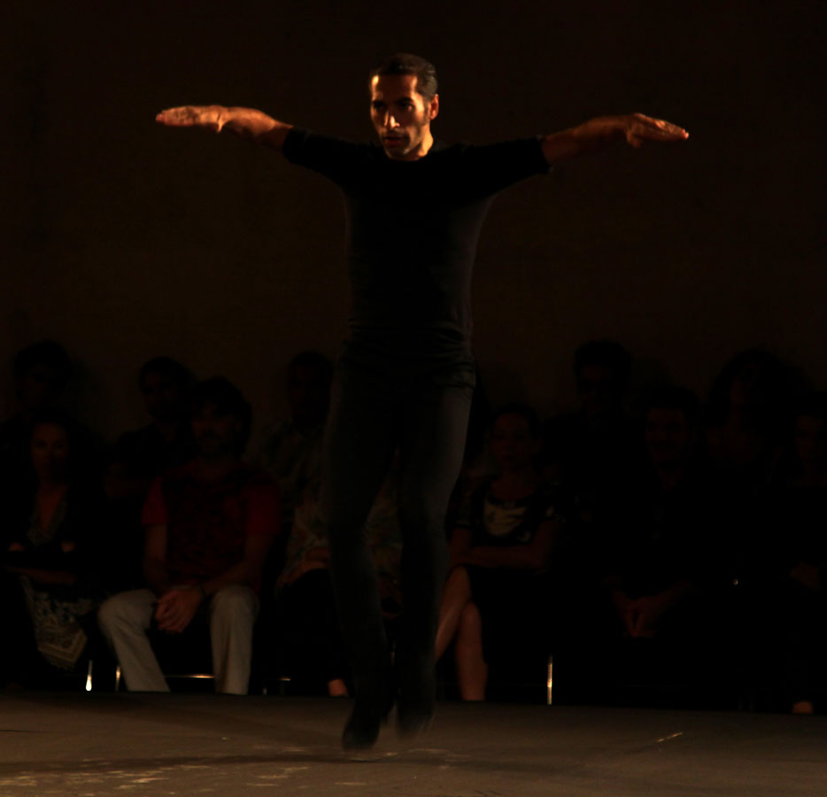 A Israel lo hemos visto extremadamente delgado pero fuerte. Es un look que complementa su baile conceptual. Poco se puede decir de lo que hizo durante esos 40 minutos. Las posturas galvánicas de siempre, con bastantes nuevas que delatan mucho trabajo de investigación. Y me pregunto: ¿no se realiza este tipo de búsqueda más eficazmente en la intimidad de un estudio? De pronto te seduce con un corto fragmento de compás, pero se desvanece en seguida. O una sola línea de cante con su voz, pero no la acaba. Pequeños gritos, percusión contra sus pies, abdomen, dientes…