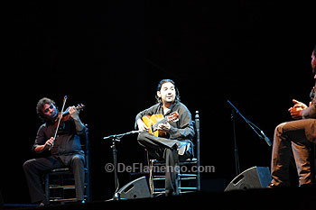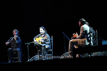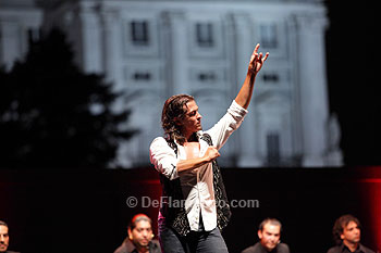 Texto: Pablo San Nicasio “Antonios a toda velocidad” La programación de “Los Veranos de la Villa” sigue contando, un año más, con el flamenco como uno de sus platos fuertes. Hay anunciados artistas en los teatros Pradillo y Lara, así como en los escenarios de Puerta del Ángel y en Sabatini. Este último palenque ya habitual en las programaciones estivales. Para 2009 se ha notado mucho recorte en la cartelería. No tanto en lo que a número de espectáculos se refiere, como en el peso de los artistas que se pasearán por Madrid. Comparen con lo que había tiempo atrás y me comprenderán. Y Sabatini es la prueba más evidente de esto. Escenario de una categoría y belleza únicas, la menguada edición de este verano tiene, sin embargo, el aliciente de contar con gente que, en condiciones de mayor bonanza económica, posiblemente no vendría. Así que para quien crea que siempre se programa lo mismo, que se pase alguna noche por las cercanías del Palacio Real a ver que se cuece. No hay mal que por bien no venga y siempre es bueno que los festivales se abran a nuevos o no tan conocidos artistas. Para el miércoles estaba anunciado un doble espectáculo. Abriendo escena Antonio Rey, guitarrista de los de la nueva onda. De las generaciones que han salido al abrigo de todos los que conocemos y, por tanto, con la grandísima dificultad que entraña decir algo nuevo en un campo, el de la guitarra de concierto, más que trillado. El madrileño afincado en Jerez ofreció un breve recital de media hora donde se acercó a algunos de los temas de su primera y única grabación: “A Través de Ti”. Y fue este tema que da nombre al disco, la rumba con la que cerró su actuación, lo más original y logrado de un recital donde se notó su gran “admiración”, como la de tantos otros, por lo que hace Paco de Lucía y, sobre todo, Vicente Amigo. Técnicamente impresionante y limpio, que ya es mucho, su música en cambio pecó de falta de originalidad. Su taranta inicial fue un calco de la estética “vicentera”, salvo en unos geniales pizzicatos. Las alegrías, pirotécnicas, olían a la playa de “La Barrosa” por todos los sitios. Bolero, rumba y bulería posteriores con el mismo material. Una técnica difícilmente superable, en eso siempre de acuerdo, pero bastante en deuda con los ases comentados. Llegando al final y abriendo la puerta a aires nuevos, repito, con el tema “A través de ti”. Ahí sí vimos que, quizá, en el futuro tengamos guitarrista de los de abrir camino. Puede que le faltase tiempo y no escogiese Antonio el repertorio más auténtico, sino el más resolutivo y espectacular de cara a la galería. El mismo grupo de Antonio Rey (bajo de Popo, violín de Bernardo Parrilla, cante de Pedro “el Granaíno” y percusión de Isidro Suárez) se incorporó a las tareas de acompañamiento en la segunda parte. Quizá lo más acorde con el día a día de estos artistas. Antonio y su gente son los grandes músicos que llevan los Farrucos de gira, y en ese contexto es donde se puede apreciar mejor lo que llevan dentro. Vimos a Antonio Rey haciendo música más original, más en su sitio, sin pensar en la competencia, sólo en él y en su bailaor. Llegaba el espectáculo a su segunda parte y Antonio Fernández Montoya “Farru”, con el aura mediático de ser quien es. “Farru” incorporó, además de los músicos que habían abierto la noche, a un guitarrista más (genial en su solo de la noche, de lo mejor sin duda) y otros dos cantaores, todos habituales en los combos de artistas gitanos como Tomatito, El Cigala, Jesús de Rosario, Canales, etc. El instintivo y visceral bailaor sevillano (este es de esos que no se pasan las horas muertas en un estudio ensayando, a este le sale) se dio un baño de multitudes que fue creciendo en intensidad hasta culminar en la soleá final. Más de veinte minutos de epílogo en los que Antonio sólo se explayó en las partes aceleradas a bulerías, que parecían no tener freno. Bulerías y tangos fueron los terrenos exclusivos de “Farru”. Algo que le resta variedad y que se va imponiendo ya como repertorio más usual y casi forzoso en los espectáculos de artistas gitanos. Y eso que hubo fandangos y una soleá reposada….pero sólo de entreacto. Únicamente para hacer tiempo y que el compadre se metiese en el camerino a vestirse. Impresionante con los pies, su atractivo reside en su innata capacidad de adaptación al compás, su don de público y su extraordinaria estrella sobre el escenario. Lo dicho, a este le sale. Quedaría verlo dentro de un espectáculo con hilo argumental, historia, coreografía…aunque quizá eso no entre dentro del esquema o de los objetivos de este tipo de artistas. Brilló el grupo toda la actuación, queda apuntado, sobre todo las guitarras y el violín de un Bernardo Parrilla que pasa por ser el único arco disponible para la raza. Era el principio de la madrugada, pero a medio aforo aún le quedaba ir a la fiesta de verdad. |