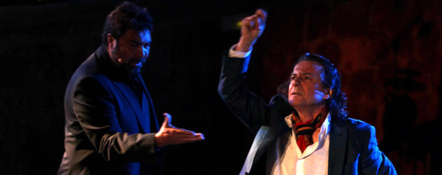 Pese a las proyecciones sobre la torre al inicio de este encuentro, este ‘Encuentro en el Baluarte’ no mantuvo diálogo alguno con el entorno ni en iluminación ni en puesta en escena con lo que tuvimos la sensación de que podríamos estar en cualquier teatro y tuvo que ser el cielo el que nos lo recordara en un anochecer que superó a cualquier ciclorama. En definitiva, echamos de menos la complicidad con el artista y nos perdimos en interludios eternos. Es difícil construir arte sobre el arte y esta vez la propuesta del alcalareño se esfumó intramuros.