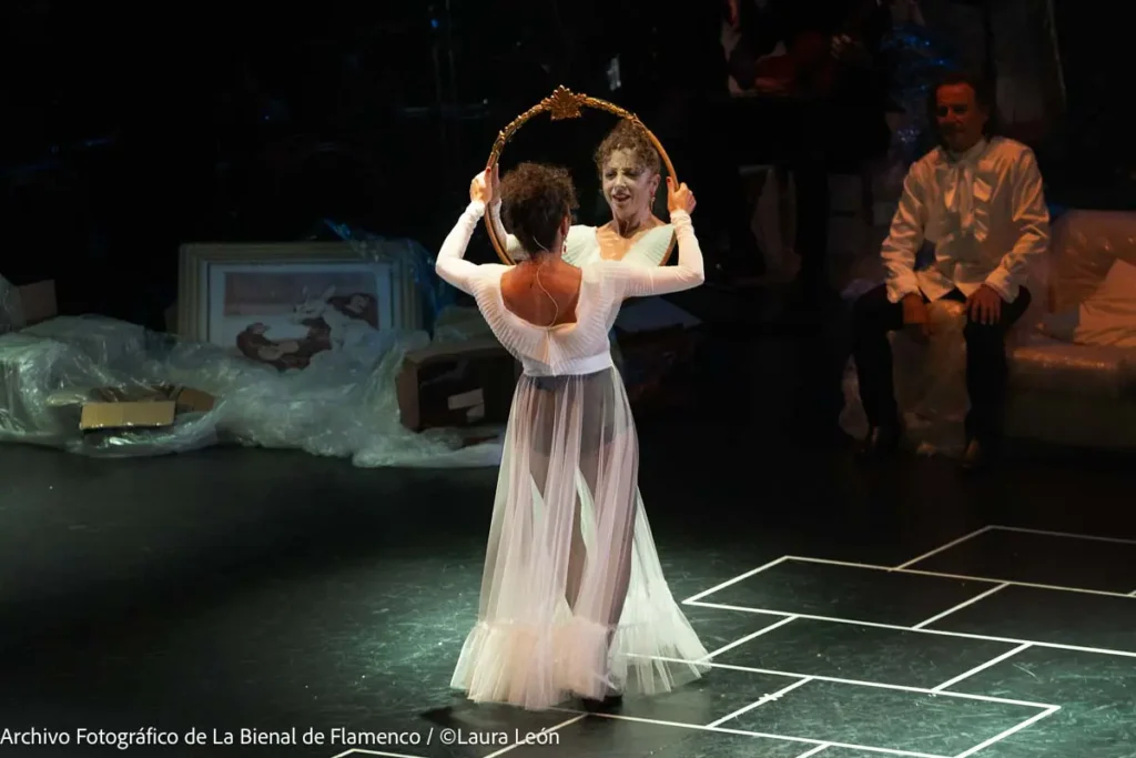 –“¿Tú sabes de qué tienes tú cuerpo, Javi?”, le pregunta socarrona Rosario Toledo a Javier Barón en un momento de los ‘Caprichos’ que estrenaron el jueves en la Bienal de Sevilla. “-De bailaor”, le responde sin darle a él tiempo, haciendo énfasis en el juego de espejos y paradojas sobre el que se construye esta delirante, divertida y delicada propuesta teatral jonda, dirigida por Alfonso Zurro, que “mira de reojo la serie de grabados de Goya para reactualizarlos, reiventarlos o imaginarlos para el flamenco”.