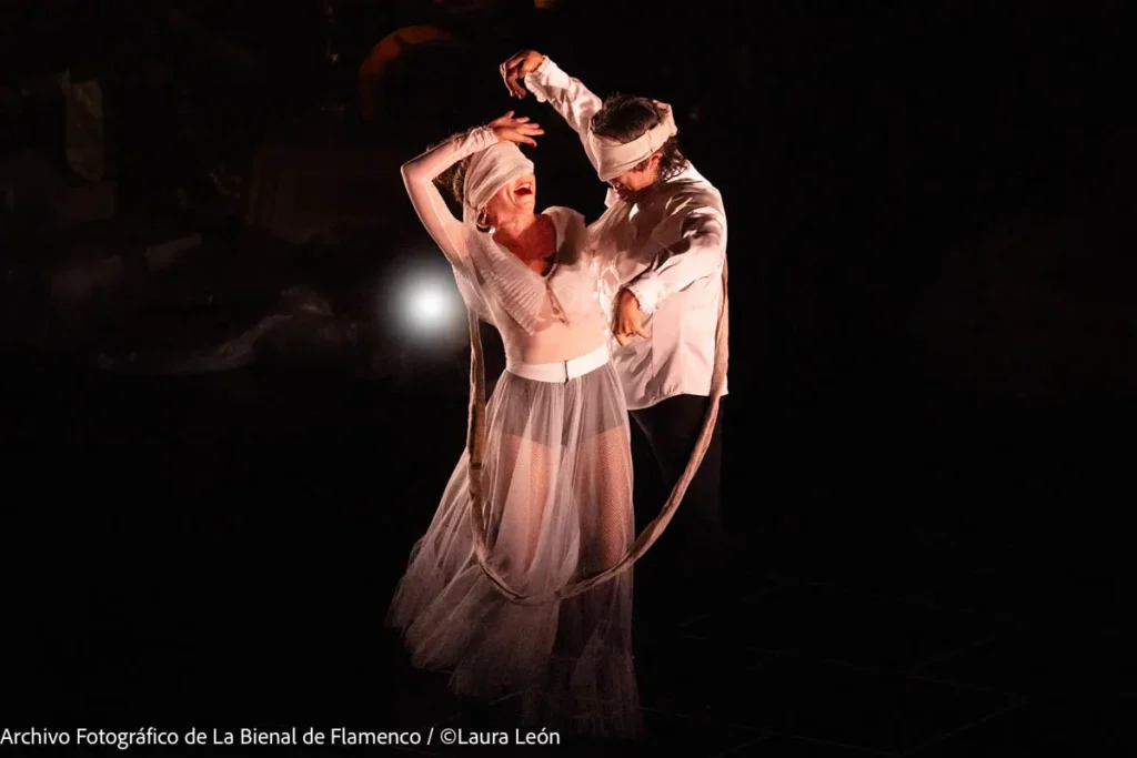 Al contrario, en sus momentos solistas, como la pieza del borracho de Barón o el garrotín de una coqueta y grácil Toledo, y en sus maravillosos y compactos pasos a dos (como esas sevillanas interpretadas como los ojos vendados como en la gallinita ciega), los cuerpos de los artistas van fluyendo ligeros, contagiados por la fragilidad y el impulso que propone la excelente música, dirigida y compuesta por el guitarrista José Torres Vicente.