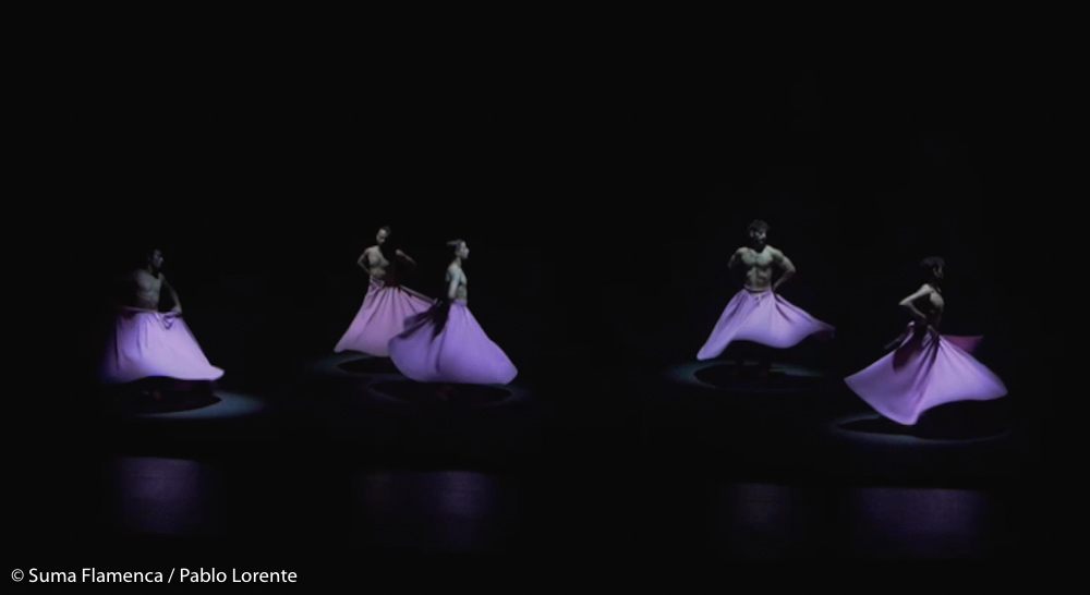 Se abre el telón y los bailarines giran sobre sí mismos como derviches que han encontrado un centro de gravedad permanente. Suena música electrónica turca y los giróvagos tienden un brazo al cielo y el otro conectado a tierra. Las faldas se transforman en mantones. Aparece José Valencia, cantaor de voz de trueno que comienza a dictar el canon flamenco de los bailaores masculinos. Carmona arranca un aplauso descomunal que deja a Valencia con la palabra en la boca, cuando se disipan los entusiasmos entona la palabra pendiente: SOBRIEDAD.