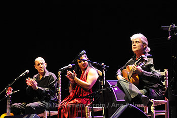 A cold wind has begun to blow in the south of France, but cante and guitar are keeping us warm in the flamenco microcosm of the Nimes festival. On this occasion young Jerez singer Jesús Méndez was the star of the first part of the recital, and Málaga guitarist Antonio Soto, the second. It’s not easy to present a concert of traditional flamenco singing and solo guitar to a foreign audience, but the Nimes theatre was filled with French followers of the art anxious to enjoy these two ambassadors from Andalusia. Like other towns of the flamenco territory, Jerez de la Frontera struggles to keep up appearances in a changed world in which the traditional settings that nurtured classic forms, no longer exist. The golden era, we’re not even talking about Torre and Chacón, but artists nearly any flamenco fan today could have heard live…Terremoto de Jerez, Paquera and Tío Borrico among others…names with a strong aroma of wine cellars and taverns…that era can be chalked off as having come to an end. This is the landscape that was awaiting Jesús Méndez of the San Miguel neighborhood of Jerez, upon whose shoulders, almost exclusively, has fallen the historical weight of carrying on his city’s flamenco tradition. Lots of responsibility for just one person, and a fine job he’s doing. He was to have been accompanied by the popular Moraíto who, for medical reasons, was substituted by his son Diego del Morao. Méndez dedicated his performance to Moraíto, and those of us in the audience shared that sentiment. Diego opened with a bulerías guitar solo, then Méndez arrived to interpret the classic song “Soleá de mis pesares” popularized by Paquera de Jerez, the most famous Méndez of the familia. Jesús’ clean natural voice illuminated an assortment of cantiñas including styles of Pinini, alegrías de Cádiz and romeras, and malagueñas de Chacón end with abandolao cante. After soleá apolá, not typical for a Jerez singer, he moved into more familiar territory with siguiriyas and cabal. The French audience failed to react to fandangos that followed – in Spain there is a certain fandango cult foreigners do not share. Bulerías with a powerful San Miguel flavor, “La Salvaora” to do a little Caracol sound, a Jerez dance bit, an encore of tonás and more bulerías to make clear what Jerez once was, and what it still has the potential to be thanks to the tireless dedication of Jesús Méndez. Antonio Soto, born in Barcelona in 1966 and brought up in Málaga, winner of the Bordón Minero of La Unión and the guitar prize of Córdoba, has been regular accompanist for Fosforito and Agujetas, which gives an idea of his capacity. In fact, he is more widely known in his facet as accompanist than soloist. He came to Nimes with a group of five, Bonela hijo and Isabel Soto doing the vocals, Rafael Heredia on percussion, Juan Santiago providing palmas and Alejandro Mateo on flute. Soto began with a solo composition of taranta before summoning the rest of the group. A tanguillo in flamenco key with the high-pitched voice of his sister Isabel, alegrías in A position, swift and breezy with Bonela’s singing, and a different feel from the usual. Without a doubt this guitarist is more at home with the rhythmic forms. Tangos with voice and flute – it would have been nice to hear Piyayo forms with the peculiar flavor people from Málaga give, but the piece was strangely beautiful in its own way. Throughout the recital, Soto employed an energetic attack, aggressive delivery and powerful thumb as you would expect from someone of his generation. Bulerías had modulations and musicality firmly anchored to earth, so different from the ethereal sound of younger players. Soto’s sister Isabel had an interesting bit. Towards the beginning she turned the audience off with a sharp and frankly annoying voice, but went on to demonstrate her art with bulerías cante and dance in the best tradition of Cañeta de Málaga who is a relative of hers. Noteworthy was the dancing of Juan Santiago who provided the palmas. The afterhours fiesta at the hotel bar was inevitable, and each day more flamencos arrive from Marseilles and other French towns to take part in the informal flamenco ambience of the Nimes festival.