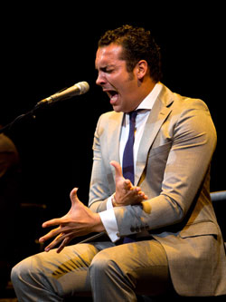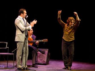 Jueves Flamencos Cajasol Text: Gonzalo Montaño Peña. Cante: Jesús Méndez; Guitar: Manuel Valencia; Palmas: Carlos Grilo, Manuel Salado. Special collaboration in dance: Javier Barón. Jerez singer Jesús Méndez came to Seville prepared to demonstrate that young singers from his town do not only sing bulerías. And for the purpose, he came with a repertoire of cante worthy of a complete professional flamenco singer. He has the basic talent, but also takes care to seek out the richest sources in order to explore the possibilities of cante. That’s the way to do it. He began delving into the past to the collective gypsy memory with an a capella romance reminiscent of the “puertos”, cantes handed down from José “El Negro”, Ramón Medrano and El Chozas. His voice found just the right shading and got the audience’s attention provoking shouts of “ole!”. The rhythmic concept of Manuel Valencia’s guitar pushes the tempo and gives life to cantiñas, the palmas are staccato sharp and Jesús goes from Cádiz to Utrera giving all the color of his rich low tones. I don’t need to praise the quality of the singing, because it shines through all by itself, such as in the malagueña. From top to bottom, wonderful low tones that give body, and little by little effortlessly seek out their high points, without shouting, and without haste. It goes without saying that the model he follows is that of his aunt Paquera, although he himself knows it could be counterproductive for anyone to be compared to such a singer, and it’s clear his other maestro is Antonio Mairena, present in his singing in any number of subtle ways. It’s strange young singers don’t draw on the musical treasure left to us by the maestro Mairena as much as they should. It’s possible that that line of investigation takes so much work, it could possibly reveal a young singer’s shortcomings in ability or attitude. Jesús Méndez has the voice and inclination to study the Mairena school, as was abundantly clear in the soleá de Charamusco where he drew on the great Antonio Cruz. Jesús relied on his Jerez backgraound to interpret some wonderful siguiriyas del Marruro with the cabal of Serna, and fandangos of his aunt “Paca” in which he sang without the amplification that had been giving him some problems, and he devoured the audience with his magnificent voice. To close the recital, and without it being the central theme of the evening, Méndez sang bulerías drawing on the essence of San Miguel as well as Santiago, and recalling El Torta, Fernando de la Morena and Paquera. He’s right on top of the “soniquete”, that energy that swings you whenever you hear it. The icing on the cake was the always exquisite dancing of Javier Barón to end this rich flamenco moment which, unfortunately, we aren’t used to enjoying in theaters any more. |