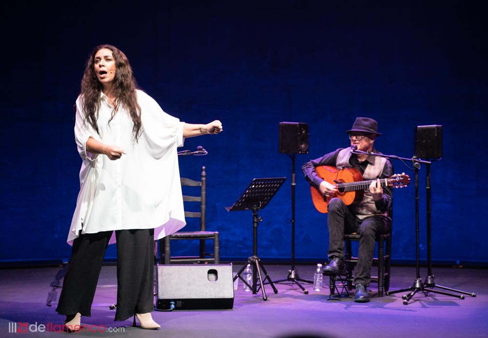 Apareció José Luis Montón en escena e interpretó una pieza llena de colorido que le sitúa entre nuestros guitarristas más imaginativos. En su extensa carrera Montón ha dado muestras de que es un gran tímido y un trabajador perseverante multiplicando obras para niños “Flamenco kids”, para la danza, el teatro y el cine. Además es compositor de canciones y ahí es donde entra Sandra Carrasco en el papel de cantante por encima del de cantaora.