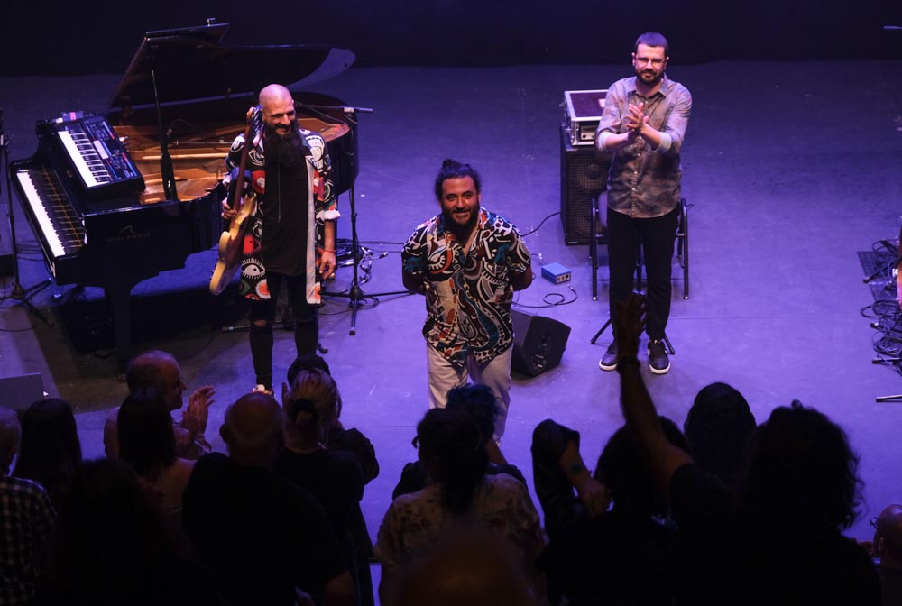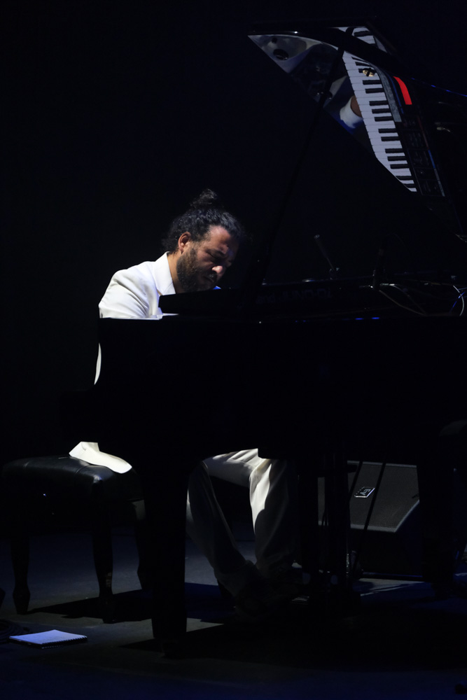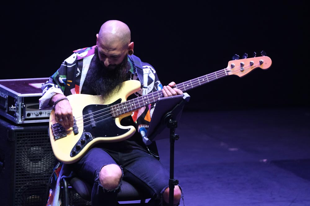 Metidos en faena apareció Josue Ronkio con un fender amarillo y tuvo el mismo efecto que si hubiera entrado Jaco Pastorius en el escenario o hubiera aparecido Godot (el ciclista que siempre llegaba el último) en la obra de teatro de Samuel Beckett. Uno ama a ese bajista porque siempre anda en aventuras musicales profundas como la legendaria banda de Lin Cortés (y Jorge Pardo) que forjó en el año de “Gipsy Evolution” alguno de los mejores conciertos de la historia de la música en España y que no supieron ver, ni los festivales de jazz, de pop, o de flamenco. Luego lo vimos con la Buika y ahora anda madurando un proyecto llamado Labudú.