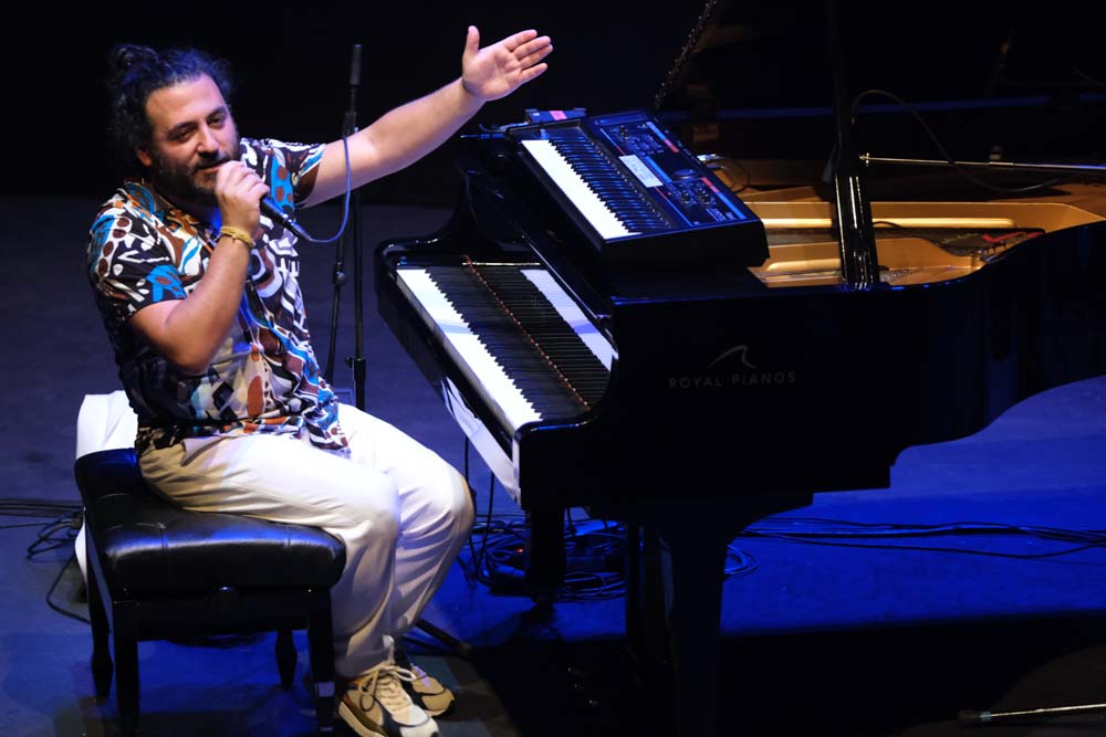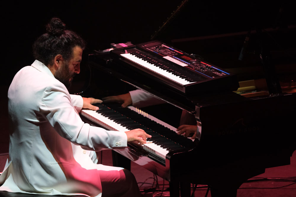 No sabíamos nada de Juan Pérez hasta el año pasado en que ganó la primera edición del concurso de composición Paco de Lucía con “Contrarreloj” que interpretó como estaba previsto a percusión y piano, además tuvo que adaptar “Igorito” a las circunstancias para volver a preguntar por el bajo que estaba en el camino de llegar al teatro Echegaray. Sugirió una pausa para no enturbiar el aliento del hombre que portaba el bajo de repuesto que llegaría a lomos de una bici sorteando turistas por las calles peatonales de Málaga, la bella.