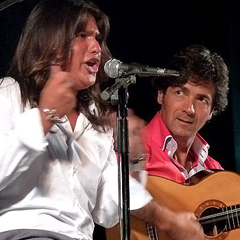 Dancer Lidia Cabello, with her singers Raúl Gálvez, Ángel Pastor and Paco Reyes, and the guitar of Niño de la Leo, that is to say, a solid Cádiz backup, danced soleá with a long bulerías ending. This dancer, who is sometimes excessively frenetic in her movements, this time found her artistic serenity and the results were admirable. The personality, not necessarily the guitar-playing but the personality of Niño de la Leo lit everyone up and gave life to the group, making for a fine performance overall. Mariana Cornejo, the matriarch of Cádiz flamenco, worshipped by many flamenco fans for her expansive personality and many years of experience, came on dressed in turquoise blue with a small fringed shawl, a perfect picture of feminine Andalusian elegance. She came with her classic repertoire, and some new things I’d never heard before in her, an arrangement of garrotín with tangos del Piyayo and the “tran tran treiro” of farruca. But there was kind of sadness not usual for this lady, and no one seemed to know the cause. Missing was the friendly repartee with the audience, the housewives’ anecdotes; not even her famous “chuflillas” had the usual sparkle. We love her all the same, she’s the spiritual godmother of this festival and we expect to see her back to her bubbly self again soon… |