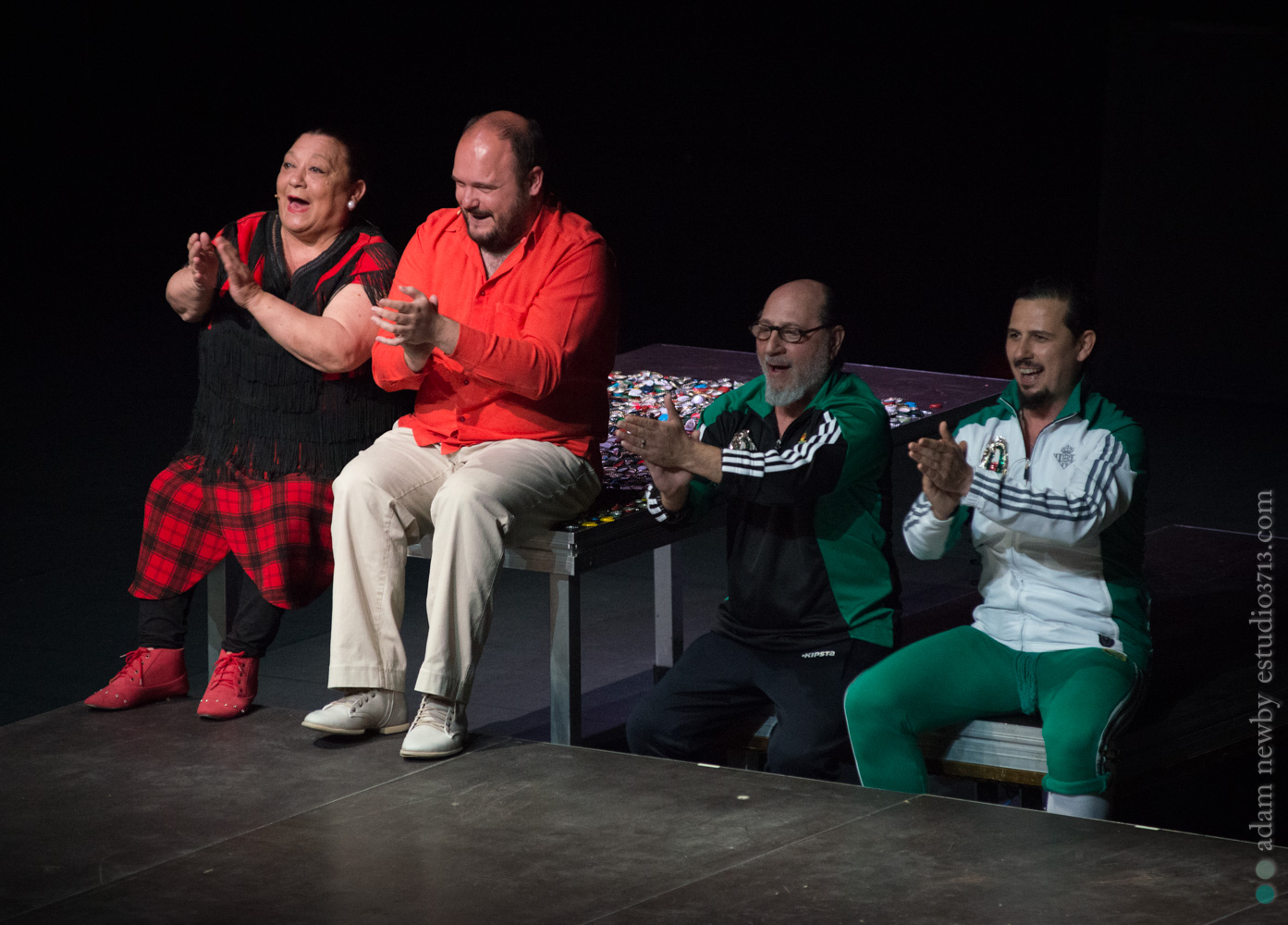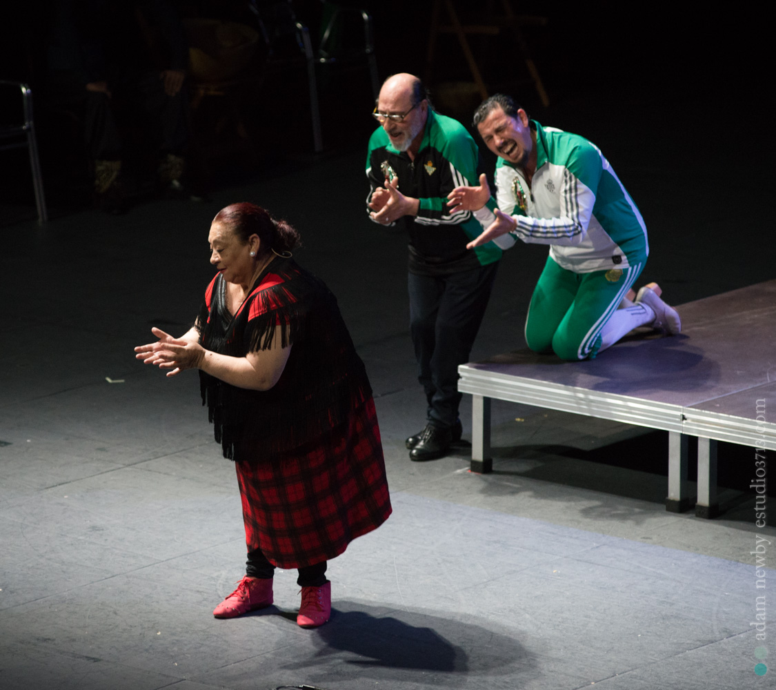 Igual se comprendió el intercambio de roles y las pretendidas distorsiones que, como la atracción de los espejos, no siempre nos devuelven la imagen que queremos de nosotros mismos. También los balidos de cabras y ovejas, las voces que no salen, los cantes entrecortados y los efectos con los que, un Niño de Elche soberbio en su puesta en escena y el resto de artistas, iban generando una atmósfera entusiasta y agotadora. Y hasta vimos en el chándal del Betis y en la vestimenta futbolera el recuerdo al niño que fue (o quiso ser) Israel. Seguramente desubicado en esas veladas del barrio de San José Obrero o en esas reuniones que vivió desde chiquillo.