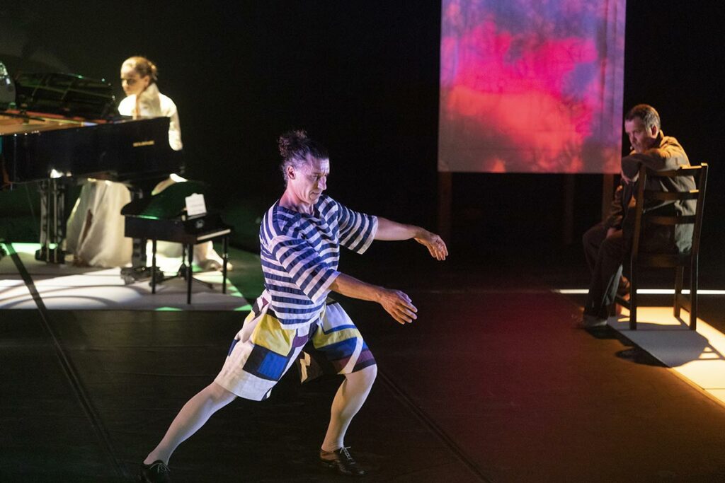 En este sentido, este homenaje por el cincuenta aniversario de la muerte de Picasso, inspirado en una de sus facetas más desconocidas, la de poeta, se plantea como un espectáculo teatral, sobrecargado de simbolismos y referencias, que pretende dar forma y movimiento a estos versos surrealistas, yendo a veces más a lo puramente gráfico (a su representación) que a lo emocional. Es decir, el texto actúa como motor de un montaje en el que la interpretación, el baile y el cante se diluyen, o directamente acaban fagocitados por las palabras. De hecho, encontramos una excesiva afectación en Macías a la hora de recitar los poemas, ciertamente difíciles de aprehender en este contexto, con lo que nos llega un run run monótono de conceptos inconexos, envueltos en piezas musicales del amigo y colaborador de Picasso, Erik Satie, que nos alejan del baile de Romero, el primer bailaor flamenco en recibir el Premio Benois de la Danza en categoría de intérprete.