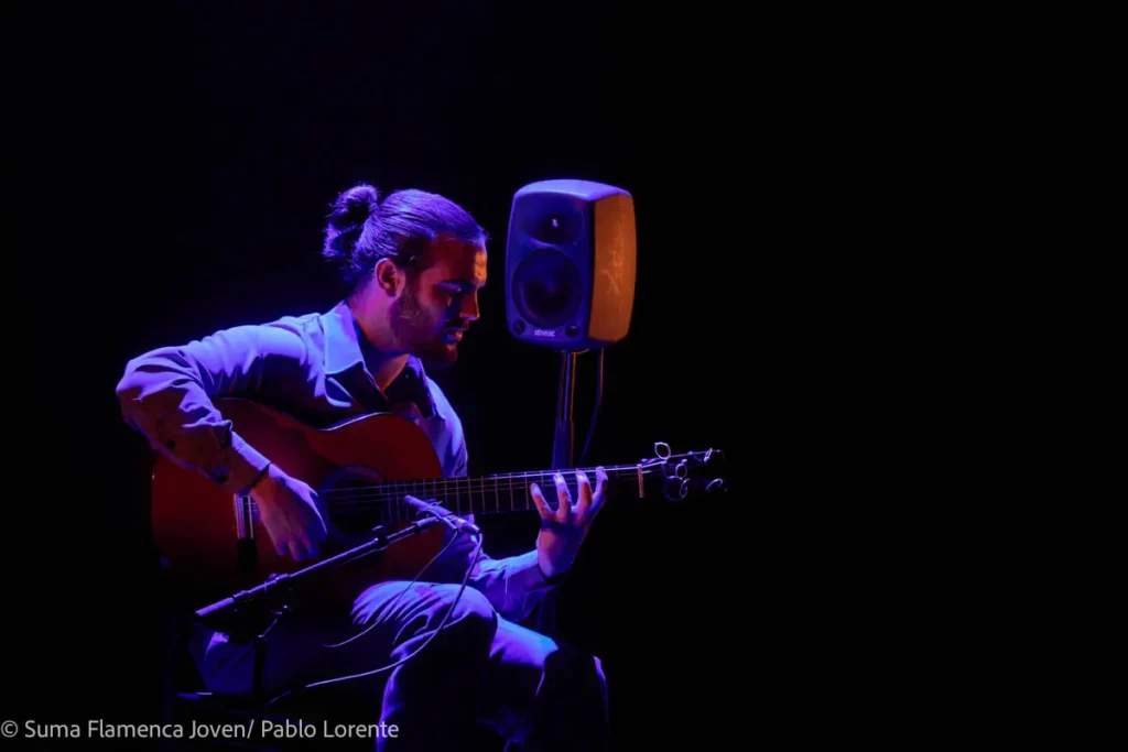 El jueves 19 dio inicio al festival la guitarra de Manuel Herrera. Comenzó por rondeñas, siguió por tanguillos, y antes de cerrar por farruca, se emocionó contando que era la primera vez que tocaba en Madrid, y mostró su agradecimiento al director, Antonio Benamargo. “Es bonito ver la ilusión de los chavales por venir a Madrid a actuar en un teatro así, además sin que sea un concurso, sin someterlos a un jurado”, comentaba Benamargo días antes por teléfono. No parece fácil elegir a quién programar entre la infinidad de jóvenes que empiezan en esto: “No es solo que canten o bailen bien, es la intuición del talento, de que van a ser profesionales y artistas, también tener en cuenta el círculo familiar, que no alimenten demasiado su ego”, explicaba. Demasiado jóvenes no suelen entrar, siempre tienen menos de 30 años, y en esta edición (que agotó entradas una semana antes) todos superaban los 20.