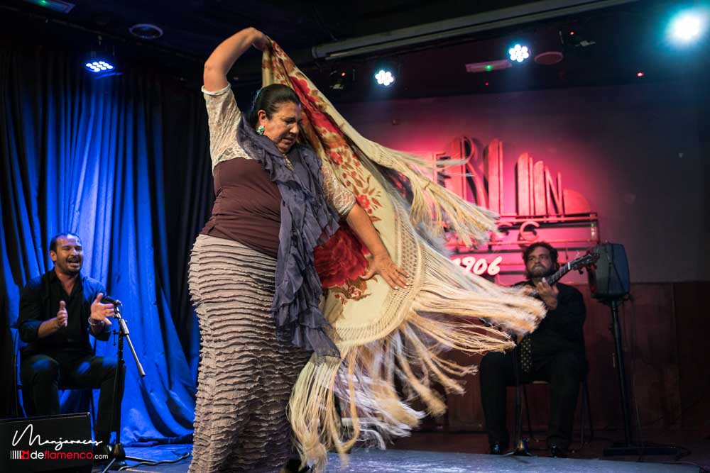 No creo que fuera el único de mis contemporáneos presentes en pasar por ese trance feliz, en la puerta del camerino estaba Carmen Ledesma igualmente conmocionada por el arte de Rafael y ella, que se considera una bailaora para el cante, engarzó el arte con el arte e hizo volar su mantón al aire del cantaor Gabriel de la Tomasa que salió entonadísimo y Carmen bailó lento, lento, con el espíritu de los grandes en las noches memorables. Cuando recogió el mantón y salió del escenario se cumplió otro de los objetivos del Círculo Flamenco que no es otro que ofrecer el mejor flamenco que conocen y que se pueden imaginar. Organizan un festival y son los primeros en pasar por taquilla. Quizá por eso los artistas se sienten queridos y respetados aunque en el camerino no se quepa y me encuentre a Diego del Morao templando la guitarra en un rinconcito al fondo de la sala.