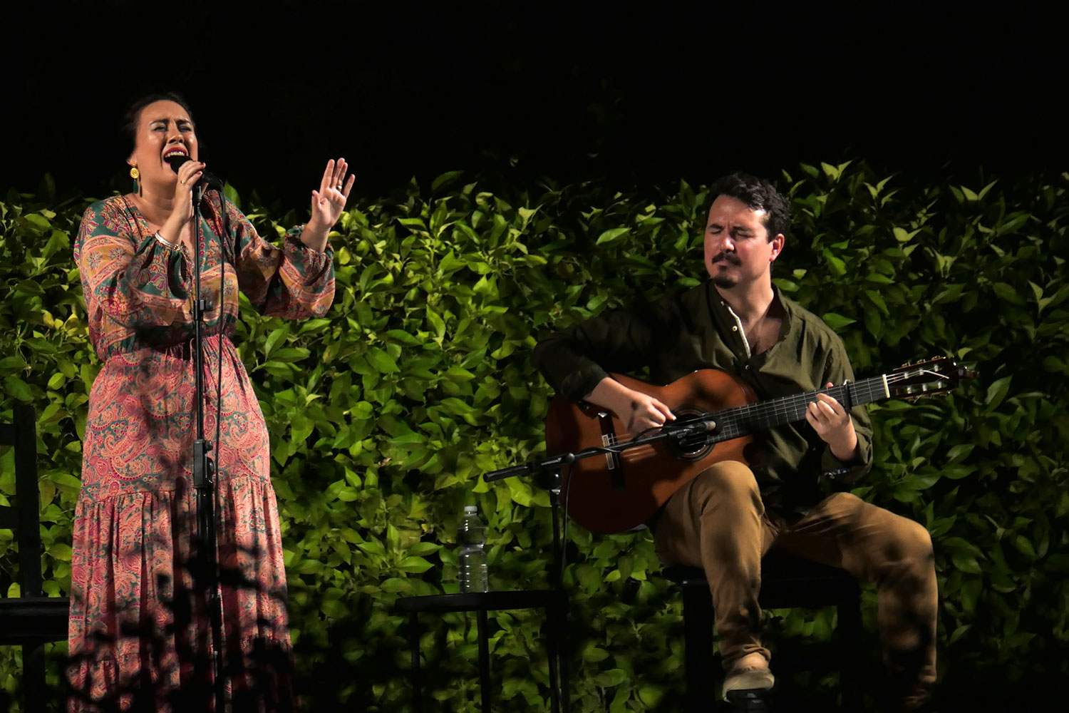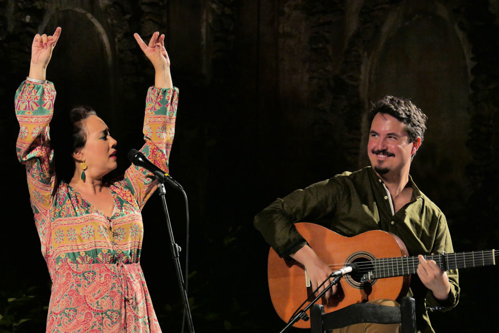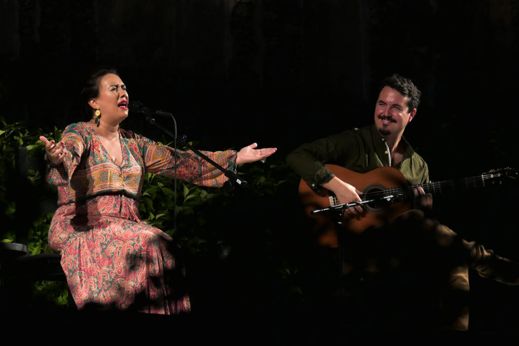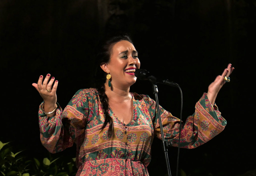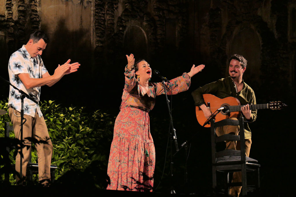Espectáculo: Nací Canción. Voz: Encarna Anillo. Guitarra: Andrés Hernández Pituquete. Percusión y coros: Roberto Jaén. Fecha: Jueves, 16 de julio de 2020. Ciclo: Noches del Alcázar de Sevilla. Aforo: Lleno.