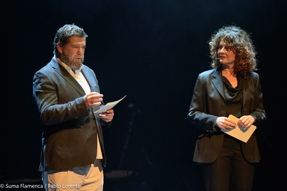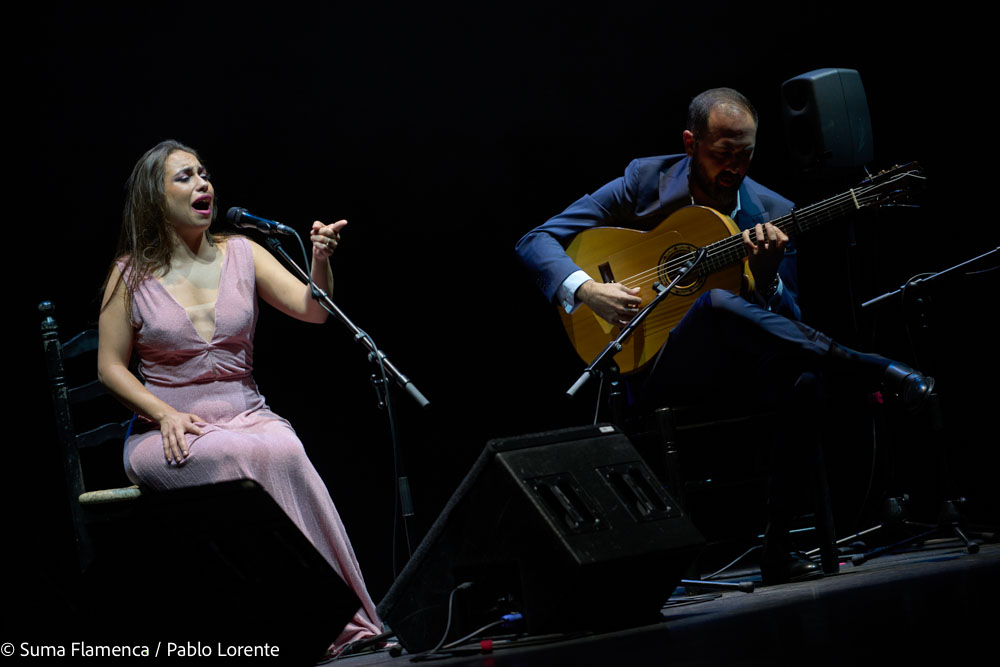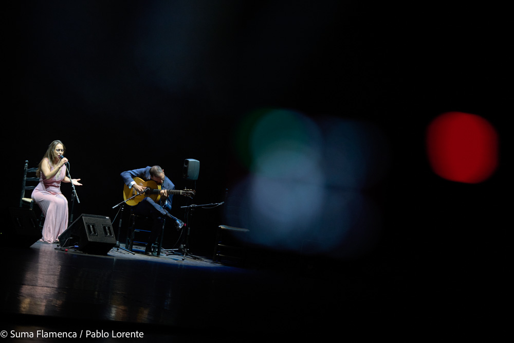 -Mmm, no voy a insistir en ello pero a mí me arruinó la primera parte del homenaje, tanto que me pareció que María Terremoto cantaba fuera de sitio y que en su segunda interpretación lo que debió ser un recuerdo a su abuelo se convirtió en grito. Menos mal que apareció Marco Flores que situó al tocaor en un extremo exterior del escenario para luego dibujar una diagonal bellísima.