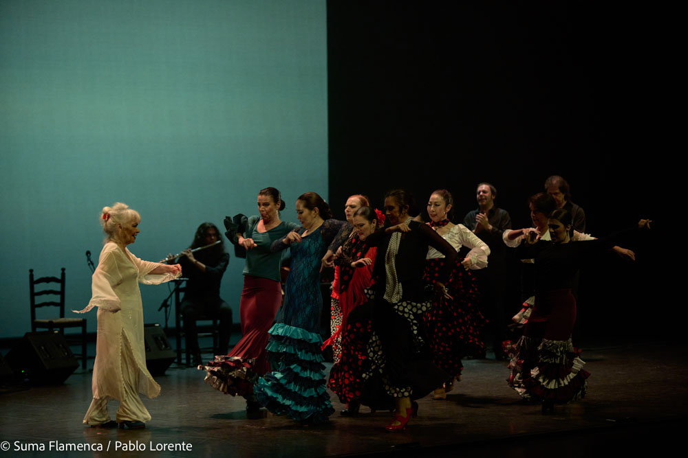 Lo que siguió fue simbólico. Ocho bailaoras de diferentes procedencias, tamaños y saberes bailan juntas una coreografia. Luego aparece la Tati que baila al son de una rumba moruna. Nos susurran los íntimos que la Tati hace tiempo que no cuenta la edad. ¿Importa? La Tati aún se mueve en escena, ese es el milagro.