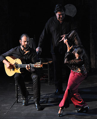 On Tuesday, a turn of the screw to another style of dance. Sevilla dancer Isabel Bayón presented a solid show. Her line is classical, the Seville school is present at all times. The living legacy of Matilde Coral, admired as well by Mario Maya. She goes back and forth between the two, always being herself and adding her own personality. The off-stage voices of Matilde, Mario Maya and Chano Lobato telling their anecdotes leave just enough time for Bayón to finish off the bulerías, having previously given Canito his rightful place with his guitar on the sixth fret in D, for the voices of David Lagos and Miguel Ortega. Leaving behind the three-quarter time, the change to tangos brought stylistic variation, and she made good use of her training. One step away was garrotín, and you can see the mix of classic dance with the conceptual approach of Canito and Jesús Torres. Dressed bandido-style, after David Lagos’ anthological soleares, the cante and dance of serranas. Very muted in this part of the show, not much going on, and then ending with abandolao. Again Canito, clutching his guitar to his chest to play farruca for the dancer who wanted to show the best of herself. Sobriety and depth, decision and substance. To finish off, alegrías and caracoles with the voice of Chano Lobato for a bulerías finale.