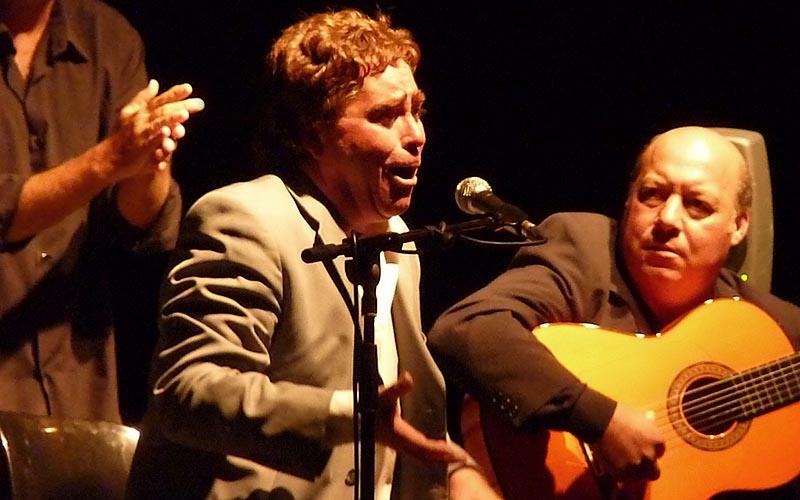 The next to last Friday in August, the night began with José de los Camarones in top form, with his warmly rough singing that was a pleasant surprise for those of the audience who had come from out-of-town and never seen the singer before. He was accompanied on guitar by Domingo Rubichi. Dancer Soraya Clavijo, winner of the 2004 Córdoba prize, danced por soleá with the tranquil elegant style that is her trademark, accompanied by the voices of veteran Curro Fernández and Juanillorro, with Román Vicenti on guitar. Joaquín Jiménez “Salmonete”, the singer who years ago was a young hopeful, continues to be hopeful if no longer young. With some nervousness in his voice, it wasn’t his best performance, nor was it his worst, and the appreciative audience was on his side from the start.