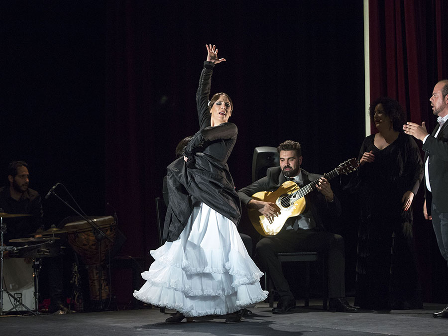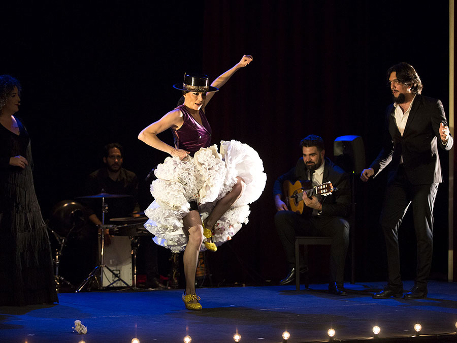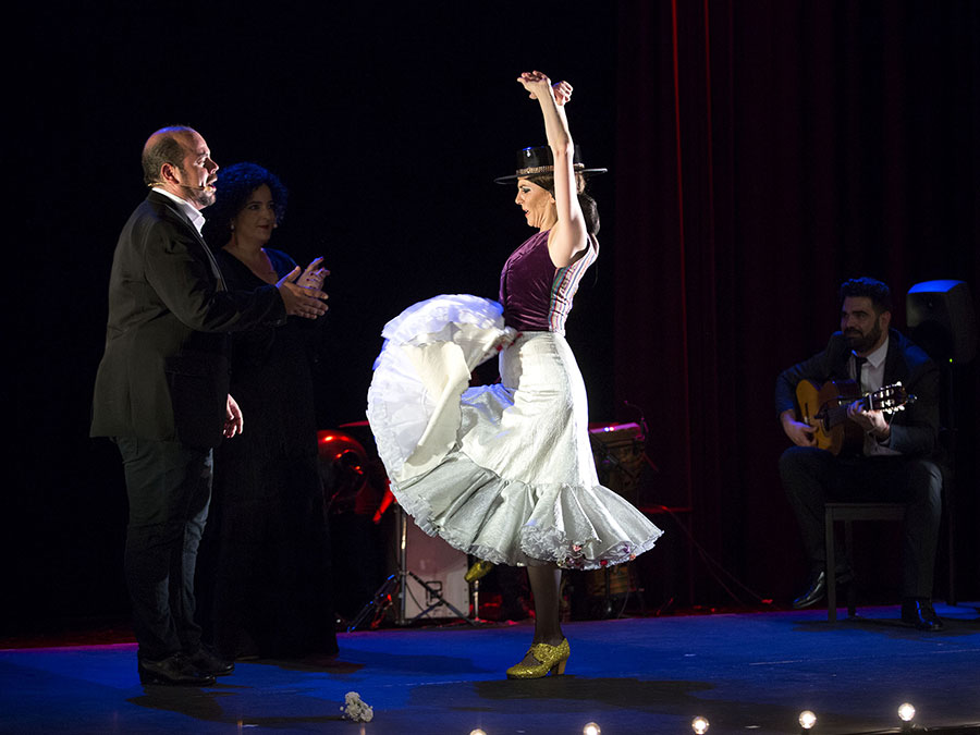 Además agradecimos sobremanera el estupendo elenco que le acompañó y sin el que la propuesta hubiera sido completamente distinta. Porque aquí, la delicada y coherente composición musical de Francisco Vinuesa, los golpes exactos y enriquecedores de Paco Vega, las coloristas, frescas y naturales voces de los tres cantaores y, por supuesto, el cuidado vestuario (no muy acertado, eso sí, para el bloque de bulería, petenera, soleá y polo ni para la época) y la propia estructura, bien hilada y construida, adquirieron un papel fundamental. Tanto para aupar a la bailaora como para guiarnos por los distintos paisajes en que se dividía la obra.