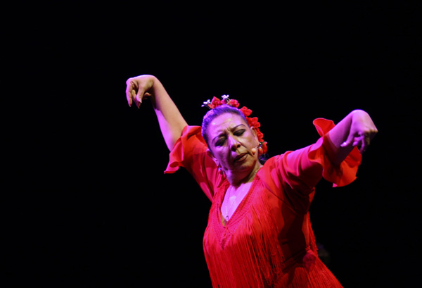 It was a real treat to allow ourselves to become imbued with the cante of Sebastián Heredia, formerly Cancanilla de Marbella, but who now chooses to champion the name of Málaga in his artistic maturity, as he prepares his next recording, “Entre Viejos Zarzales”. Wonderfully accompanied by the guitars of Chaparro de Málaga and Luis el Salao, with the jaleo and palmas of Kiko and Yaya, he laid down his masterful martinetes, evoked the sound of times past with soleá por bulería, captured all the flavor of alegrías, his tangos were excellent, he pulled up the lament of malagueñas and evoked the intrinsic drama of seguiriya provoking cheers from his fanatic admirers. Having started out his career as a dancer, he won the audience over in the fiesta final with his customary little dance, With the audience well warmed-up, the family of la Repompa raised the temperature even more, with the voice of Amparo Heredia “La Repompilla”, that sets hairs on end. She is the worthy heiress of the legendary Enriqueta and of her mother Rafaela. Her younger sister, Raquel, danced extraordinarily well por soleá, and guest artist Iván Vargas, another member of the Granada Maya family, danced alegrías. Young guitarist Fran Vinuesa had his hands full accompanying the entire show, and he has become increasingly better since his stay in Seville. Rafaela took charge of the stage, and even jumped into the audience at one point. This is the woman who was such a success in New York with her cante. In the fiesta finale, backed up by her family, she did tangos and bulerías in the style of Repompa, in an improvised performance that had a hypnotic effect on the audience.