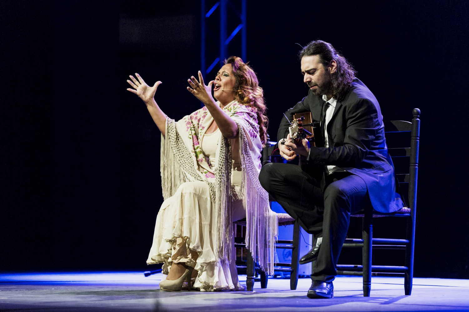 Se disfrutó igualmente de la poderosa voz negra y rasgada de Simón Román por seguiriyas y de la melódica y dulce voz de Virginia Gámez, así como de un acompañamiento exquisito y una puesta en escena impecable.