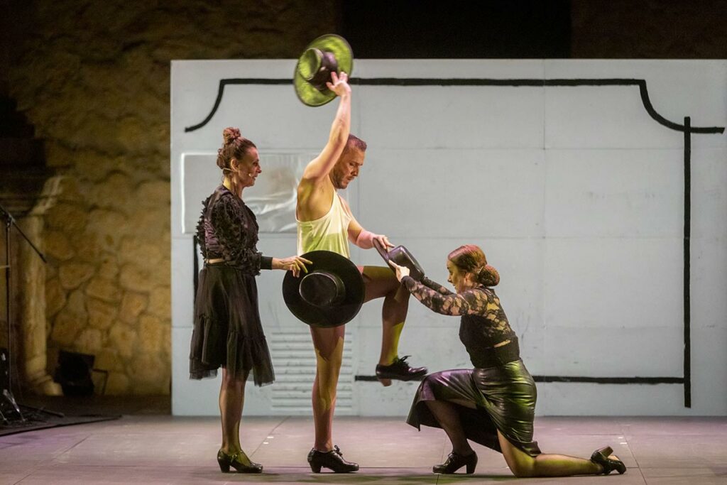 Es verdad que en este Teatro Romano, en una calurosa noche de verano de cielo estrellado donde hasta los grillos parecían haber acudido puntualmente al ensayo, costó más conectar con la emoción que concentró la obra en su estreno en el Festival de Jerez. Y que algunos problemas técnicos (como el zumbido de algún altavoz) nos distrajeron de la sugerente y atractiva banda sonora del espectáculo, sostenida por las manos pujantes y envolventes de Juan Campallo y Víctor Guadiana, que regalaron de nuevo uno de los momentos más mágicos con su duelo cruzado de guitarras flamenca y eléctrica en el que se cruzaban sombras y acordes.