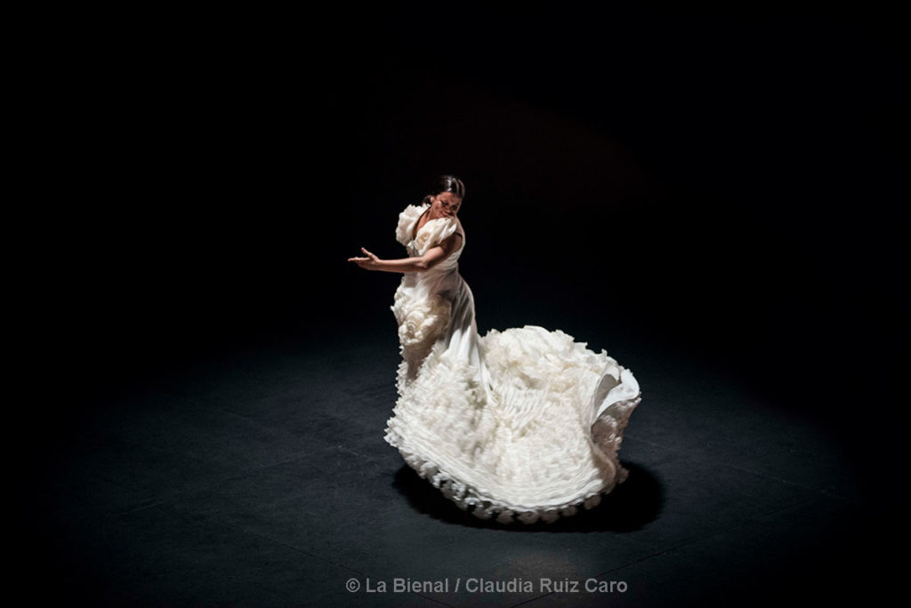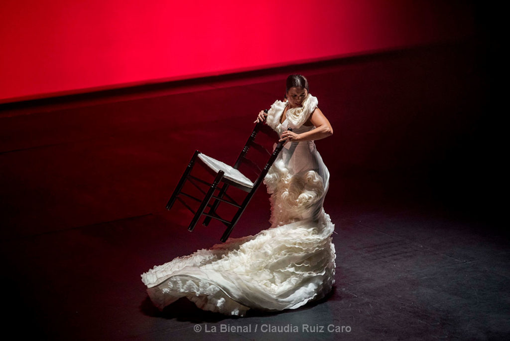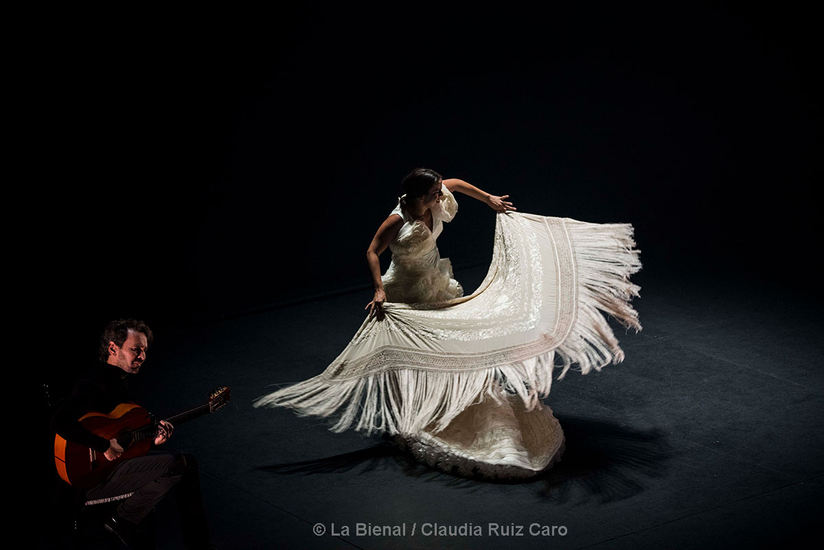 Podríamos atenernos estrictamente a su baile. A las estampas que dejó cuando descalza movió la impresionante bata de cola del diseñador cordobés sacando desde sus enaguas todas esas flores que no hemos podido coger esta primavera. A ese cambré que mantuvo sobre la silla de enea recogiendo en la curva de su espalda todos sus anhelos. A la pasión con que salió por alegrías metiendo entre los palillos el profundo amor a su tierra. A la contención con que se medió en la soleá donde no pudimos evitar acordarnos de su maestra Eva la Yerbabuena. O al desparpajo que mostró en uno de los mejores momentos de la noche, cuando sentada sobre el cajón y taconeando animó a hacer compás hasta a los flecos de la chaqueta de inspiración torera.