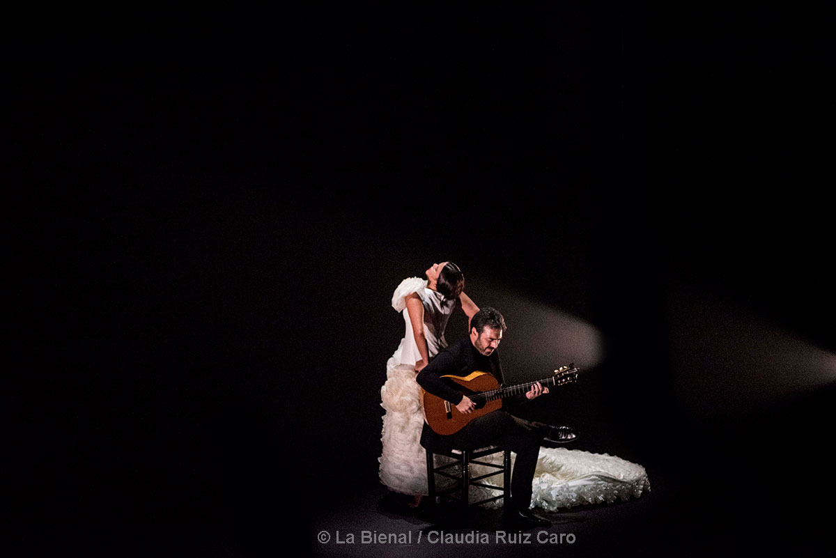Pero más que esto More (no) More es una obra coral en la que la artista está en permanente diálogo con el resto del elenco. Inmersa en el mundo en el que se reconoce (el flamenco post ochenta, su Cádiz, su infancia, su timidez, la gracia, los whatsapp…). Por eso disfrutamos tanto de verla crecerse entre las exuberantes guitarras de Oscar Lago y Juan Requena, la voz lastimada y sensible de Pepe de Pura, el poderío y el arrojo de Ismael ‘El Bola’ y el compás y la guasa que su paisano Roberto Jaén que hace crecer siempre el espectáculo donde lo pongan. En definitiva, una poliédrica, inteligente y engarzada propuesta en la que con un ritmo intenso pasamos de la emoción a la risa y de ésta a la congoja. Así hasta la euforia de quien sabe que acaba de ver el mejor y más completo espectáculo de lo que llevamos de Bienal y, aun más importante, a una nueva María.