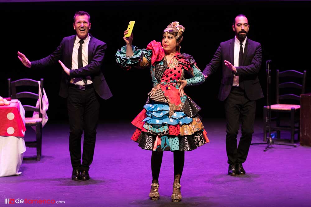 La orquesta de acompañamiento la componen Paco Soto a la guitarra y Kiko Martín y Juan Carlos Gil que hacen de todo, palmas, coros, zapateados, coreografías y sirven de sostén para gags y otras acrobacias. Paco Soto además de tocar muy bien la guitarra interviene en lo del potaje sugiriendo inundar el caldo con pimentón.