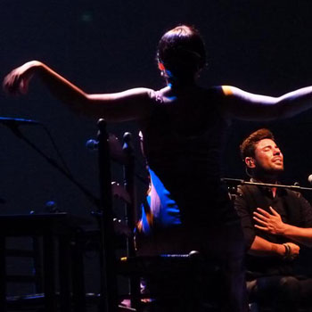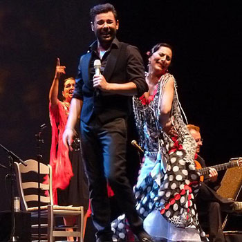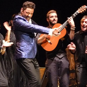 La Lupi vuelve con un homenaje a su tierra en forma de unos originales verdiales, y es cuando ves los destellos que te recuerdan que ha sido durante años la maestra de Rocío Molina. Después de siguiriyas, unos tangos de Triana con las palabras introductorias de Miguel, que lamenta el desplazamiento de la gitanería trianera y el esparcimiento de su cultura. Este cantaor siempre pone el punto didáctico reivindicativo pero sin insistir – es otro elemento de la personalidad artística del cantaor, su genuina humanidad. Un brillante solo de guitarra de Parrilla por bulerías, y vuelve Miguel para fandango por soleá y unas bellísimas sevillanas bailadas por la Lupi. “¡Vivan Manolo Sanlúcar y Paco de Lucía!”, éste último que acompaña en “ArteSano” las alegrías acancionadas que ahora canta Poveda. Una nana con el baile interpretativo de la Lupi, y entonces, bulerías de Jerez con imágenes del monumento de Paquera proyectadas. Miguel llama a Jesús Méndez a cantar, y a Trianita, la pequeñísima nieta del Niño Jero para realizar una breve pataíta y enamorar a todo el público. Dos horas de recital hasta aquí, y sólo es la primera parte. La segunda, fue dedicada a la copla con el acompañamiento al piano del catalán Joan Albert Amargós. Vuelven los flamencos para el fin de fiesta con la participación de Joaquín Grilo, y Miguel no se cansa sino que se entrega cada vez más, baila ese baile gracioso suyo, ahora incorporando aquel gesto de los festeros de echar la chaqueta hacia atrás para descubrir un hombro. Tres horas sin descanso….orejas y rabo para Miguel Poveda…vamos, el toro entero se ha ganado el hombre de Cataluña que vino a Andalucía, nada menos que a Jerez de la Frontera a ponernos el flamenco en bandeja.