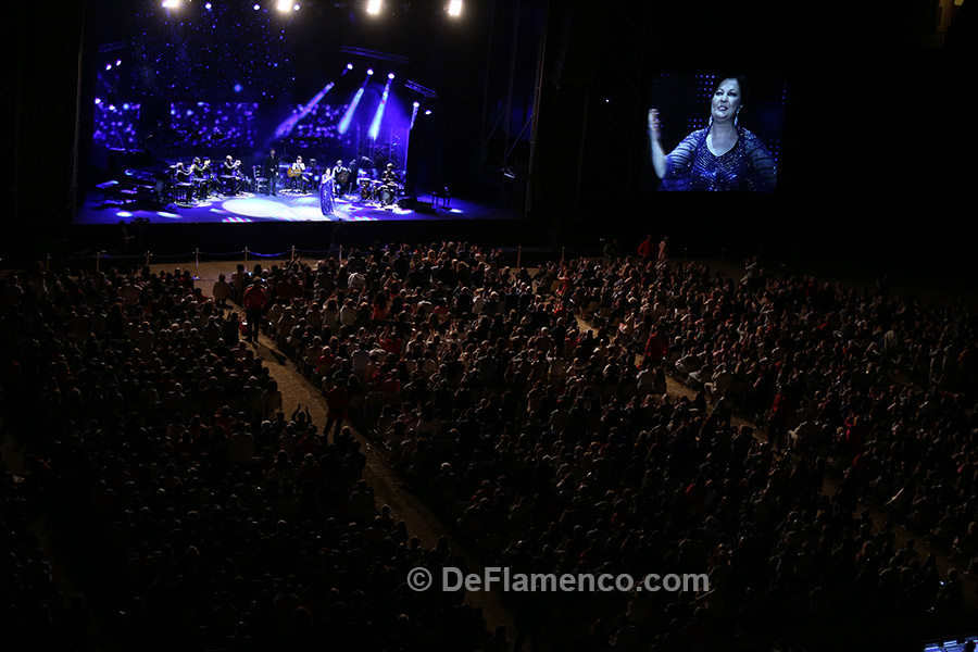 This was undoubtedly the high point of the evening when she remembered through images a number of people who had been important for Miguel: his father, Chavela Vargas, Morao, Camarón, Bambino, Pencho Cros…all intertwined in an interactive documentary for seven thousand people, summing up more than two decades of dedication to music.