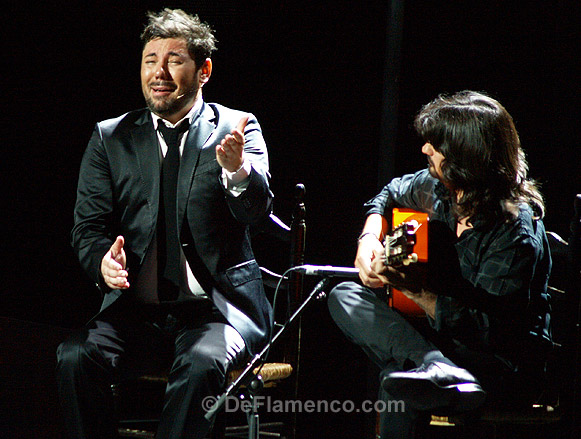 Text: Pablo San Nicasio The earth finally shook beneath our feet. The Häagen-dazs, what a name for a theater in the center of Madrid, a venue that lately has adapted well to whatever comes its way. Ann Frank and the Nazis, Pitingo with his chorus-girls or Nacho Cano’s boys. But something quite different from all that, is the reaction Miguel Poveda triggered with his “Flamenco sin Frontera”. A long-lived and successful show, ever since its much-awarded creation for the 2008 Festival de Jerez, offered last night to Madrid flamenco followers was the ultimate icing on the cake. Poveda took the stage claiming his voice was “a little below par, but with more heart than ever”, with his new record under his arm. This Catalonian guy always comes along with something novel. He is in that transitional phase inhabited by the chosen few who are about to make the definitive leap to international fame. Miguel Poveda is the referential voice of Spain. Some time ago, flamenco already became too small for a performer who wants and is able to do much more. We’ll be watching. He came with his palmas back-up, with Chicuelo and Moraíto on guitar, dancer Andrés Peña and his Luis “El Zambo”, to banish any doubt whatsoever about who the big cheese is in all of this. His “Flamenco sin Frontera” at this stage of the game, is a kind of “may the children gather round…I wish to establish that I am capable of the best flamenco, that I may, tomorrow, record Spanish lyrical song or whatever I want”. A momentary return to what captured his imagination in the first place – Jerez – although he’s involved in other things, and still racking up successes. In other words, he’s behaving like any other genius. “Flamenco sin Frontera” joins informal biographical details of Poveda’s artistic life and guitarist Chicuelo, with the no less colorful Jerez ambience of cante, guitar and dance, with the crème de la crème of that southern corner of Andalusia. With numbers that flow seamlessly, and a stage-set made to represent the typical bodega with wooden tables and glasses (lots of toasting with water), the old Calderón theater was witness to Zambo’s splendid sound in siguiriya, martinete and of course, bulerías. Moraíto’s fearless guitar recalled well-worn variations from his repertoire. Andrés Peña’s intense, fiery dance added another dimension, and Chicuelo’s crisp clean guitar followed the “boss” closely. Miguel Poveda never became tiresome or predictable, from the first pieces of mining cante, to abandolao, tientos tangos, bulerías, cantiñas…always upwards and outwards. And that was no easy task, considering the level from the outset. The fiesta finale was a rundown of Poveda’s last recording. His popular bulería song “Cuatro Capotes”, and the song “A Ciegas”, which we’ve heard so much in recent weeks, even before the record was released. While waiting for the show to begin, I spoke with a colleague next to me about the importance of critics who are acerbic, literary, soft…the need for a wide variety of opinions…although at times the performers themselves are annoyed, often believing they are one step above god. When you come across people like Poveda in this Suma Flamenca festival, forget about half-baked offerings. Someone capable of being praised and appreciated by all sectors, even with his bulerías dance, deserves all our blessings. As if he were an apostle…from the neighborhood of Santiago.
