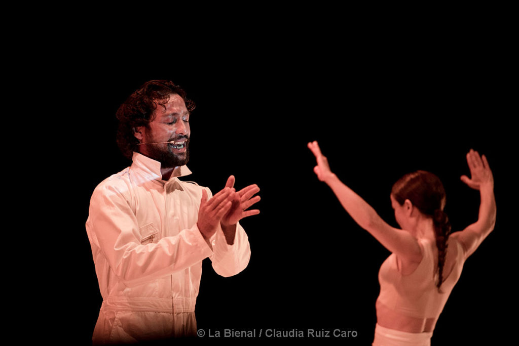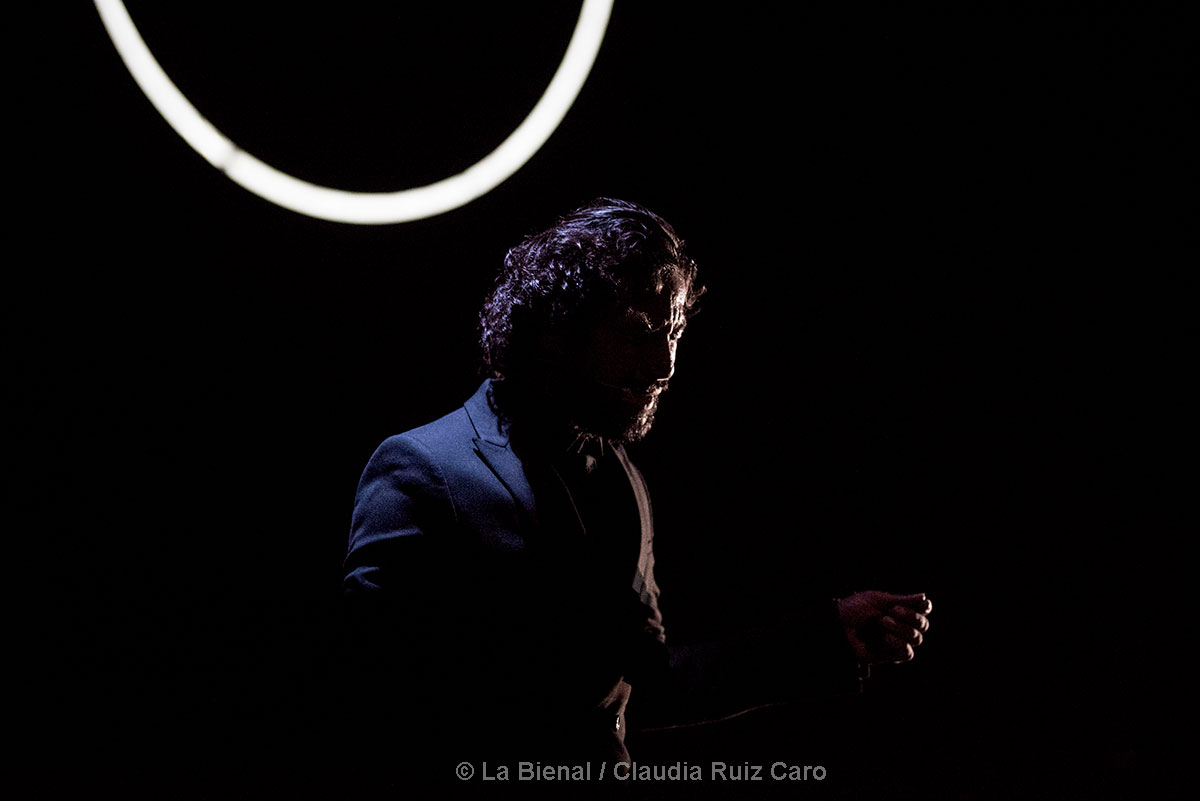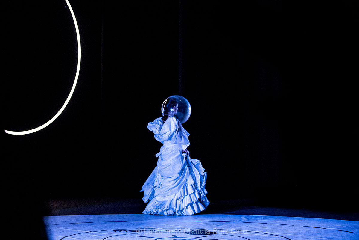 Desde luego, tampoco acompañó la sobrecargada escenografía y la complicada dramaturgia en la que se abusó de elementos superfluos (esa luna y ese círculo que constantemente subían y bajaban) y de una reiterativa composición en la que encontramos recursos demasiado manidos en la actualidad (como ese círculo frente al que gira todo que hemos visto tanto esta Bienal).