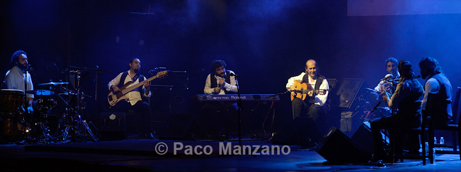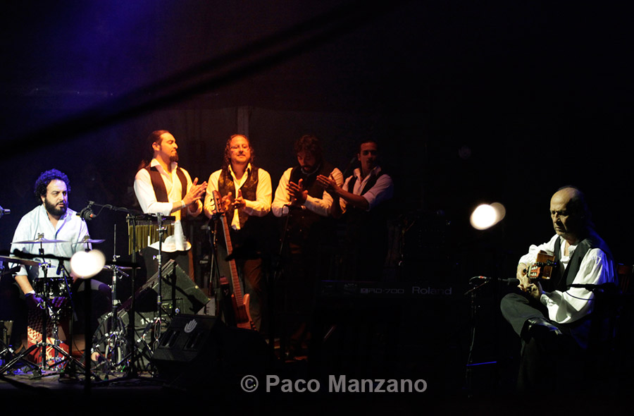 Special mention is in order for the performer who opened for Paco de Lucía. Enrique Amador, “Musi”, a gypsy and resident of the Zaragoza neighborhood of La Madalena, accompanied by his own band including guitar, bass, percussion, flute and violin, did a fine job that was worthy of the importance of the event.