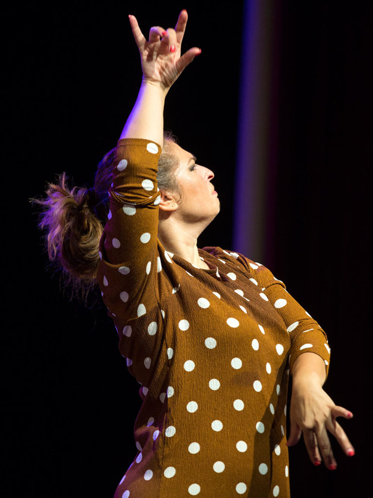 Es decir, lejos del barroquismo y la pompa al que nos tiene acostumbrados, aquí la artista pone el eje en el trabajo de su cuerpo y en la ejecución de coreografías que son un despliegue de técnica y recursos y también de pasiones que la llevan al límite. Así, Pastora Galván utiliza la bulería como el palo aglutinador de todo el universo flamenco recorriendo durante una hora todos su ritmos y estilos, desde su faceta más frenética a la más tediosa, de la más profunda a la más sensual, de la más alegre a la más triste.