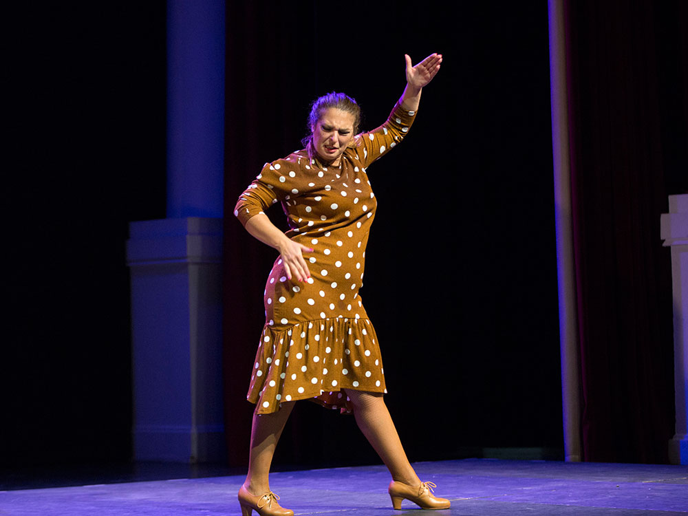 A Pastora Galván se le derrama el compás por los pies y le rebosa la gracia por las caderas. Desde el escenario desprende con sus manos descargas de energía y concentra en su mirada la sabiduría de muchas viejas. Por eso, consigue que el público no le quite ojo de encima y aplauda con igual entusiasmo cada uno de sus empaques. A pesar de lo arriesgado de una propuesta que se sustenta únicamente en la bulería, sin cambios de escenografía ni vestuario y sin más acompañamiento que la voz y las palmas, de los más grandes eso sí.