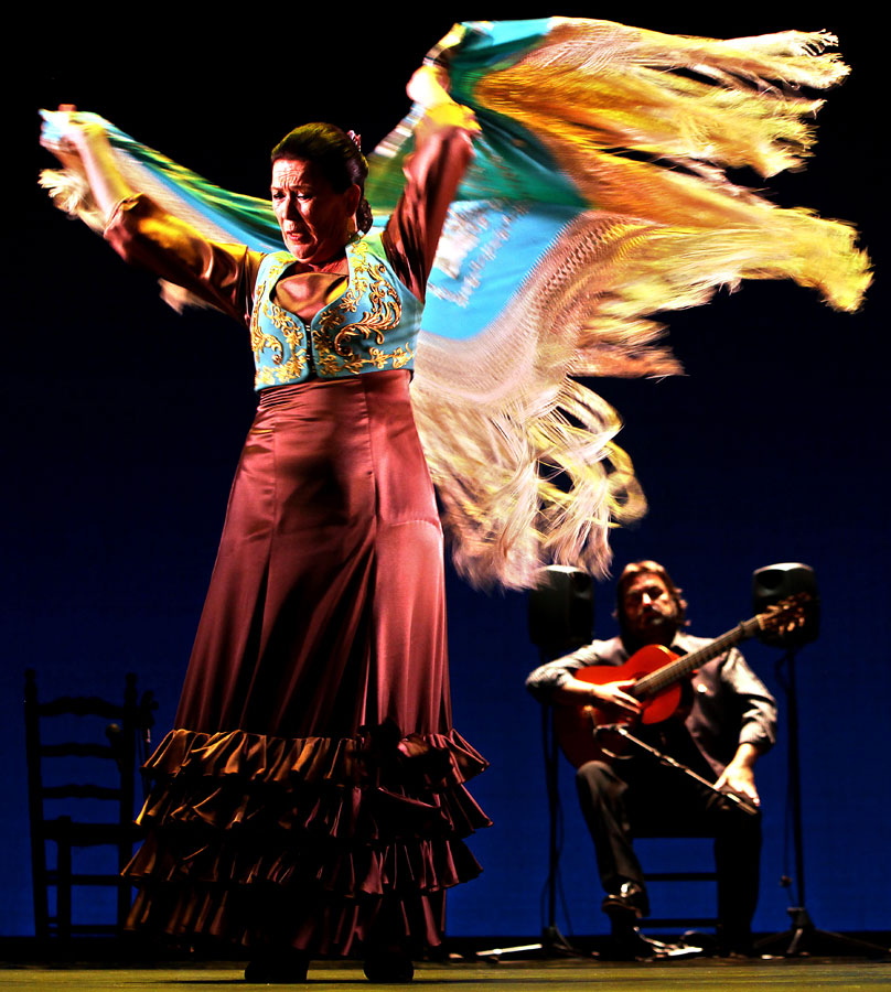 A las ocho y media de la tarde, en el Teatro Lope de Vega, dos veteranos muy admirados en Sevilla han abordado el desafío como honradamente han podido. Ricardo Miño, guitarrista rompedor en su día, y Pepa Montes, continuadora de la “escuela sevillana” del baile, siguen luchando para mantener su relevancia en un mundo flamenco de jóvenes de un nivel extraordinario. El resultado ha sido un espectáculo retro con altibajos donde hemos podido contemplar el baile de principios de la década de los setenta cuando Montes fue premiada en el Concurso de Córdoba. El baile flamenco ha evolucionado dramáticamente desde entonces, casi tanto como la guitarra. Hoy en día dominan las formas de Galván y de los Farrucos, y la escuela sevillana lo tiene crudo para defender su minimalismo y ausencia de efectismo frente a aquellas dos movidas tan dinámicas. De hecho, apenas hay jóvenes que eligen este camino, y los principales intérpretes que lo cultivan están en la etapa final de sus carreras. La ansiada globalización ha sido un pacto con el diablo, y nos ha conducido a un tipo de flamenco cada vez más extravagante y de un alucinante virtuosismo.