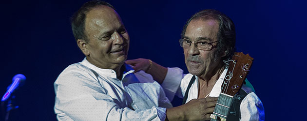 Aparece Tomatito que ahora hace música con pausas y silencios y a la tercera se arranca por bulerías y escuchamos el fuego, la rabia y todo esos sonidos que salen de un trozo de madera con cuerdas. La afición siempre le hace la misma pregunta. Tomate tío ¿cuando vas a grabar con un cantaor? Mano a mano los dos solos. Y el guitarrista repite: “si es que he estao con el mejor” y tuvo que ser ahí en el homenaje a Pepe Habichuela cuando le hemos vuelto a escuchar así, en lo básico, dos sillas, una guitarra y la garganta de José Mercé que se mete en una soleá para empezar, luego alegrías y un remate por bulerías.