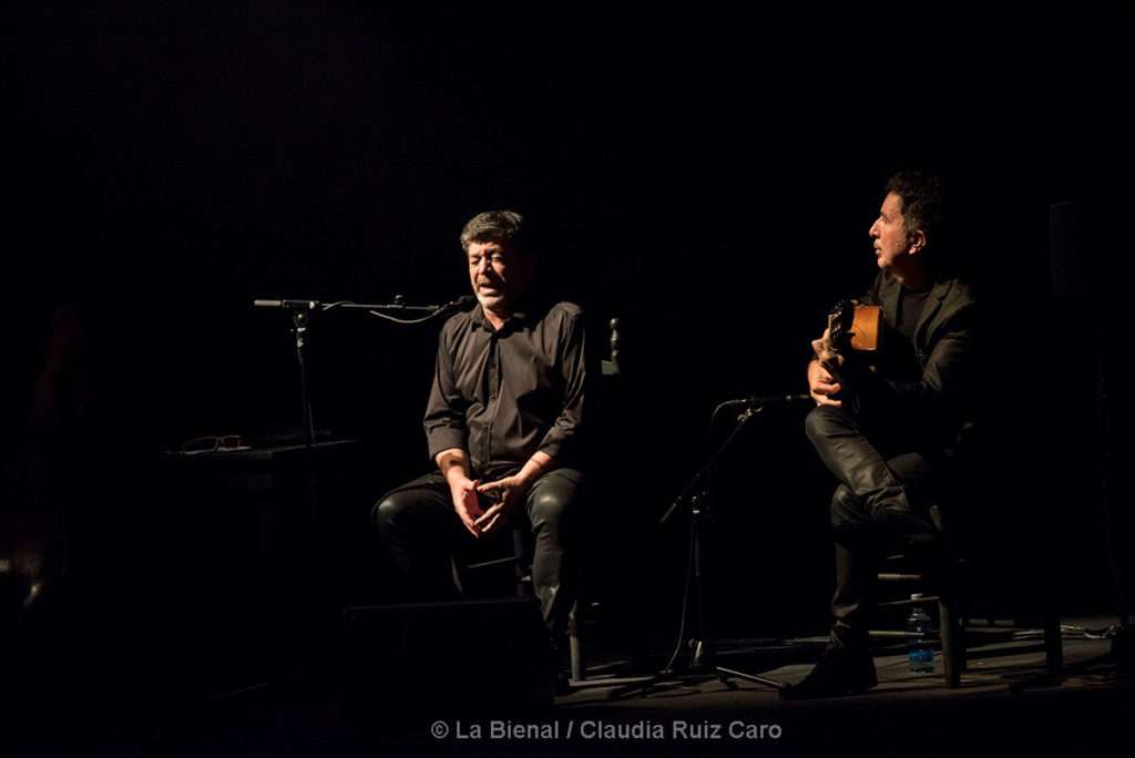 Es verdad que costó introducirse en la atmósfera y que el recital empezó con cierta frialdad, pero cuando el artista empezó a sentirse cómodo con la siempre atenta, inteligente y enriquecedora guitarra de Alfredo Lagos -mitad imprescindible en la obra- y con la sugerente, eléctrica y exquisita ambientación musical de Alejandro Rojas Marcos, Marco Serrato y Antonio Moreno la idea fue tomando forma y nos dejó interesantísimos momentos.