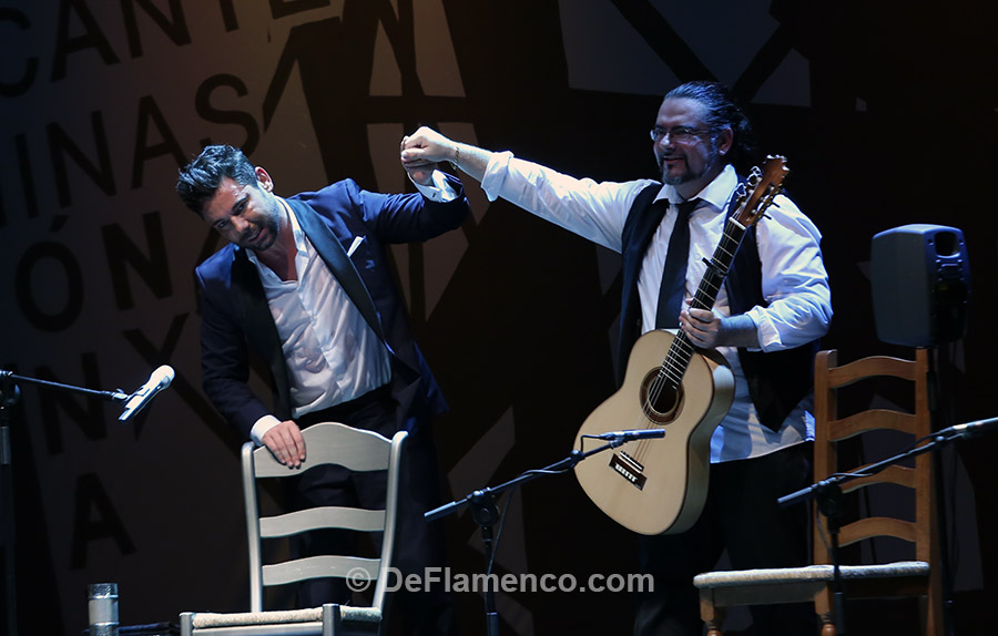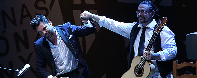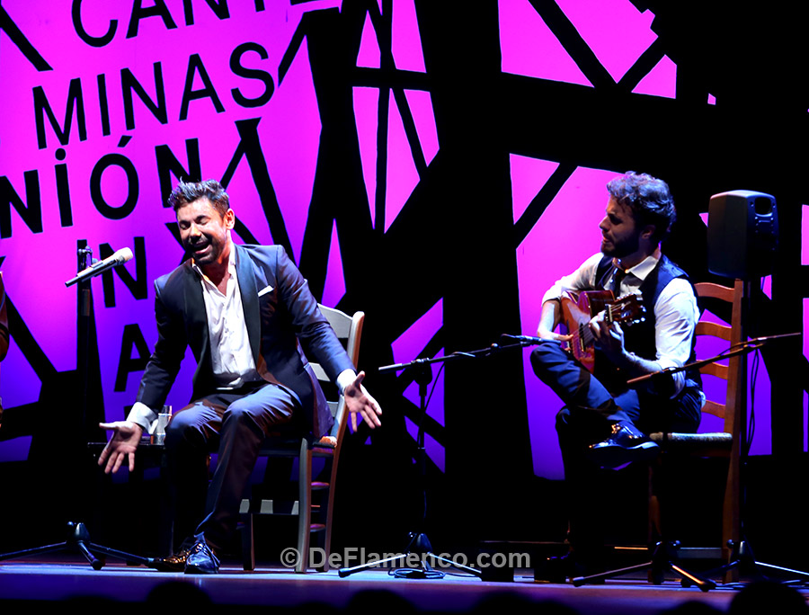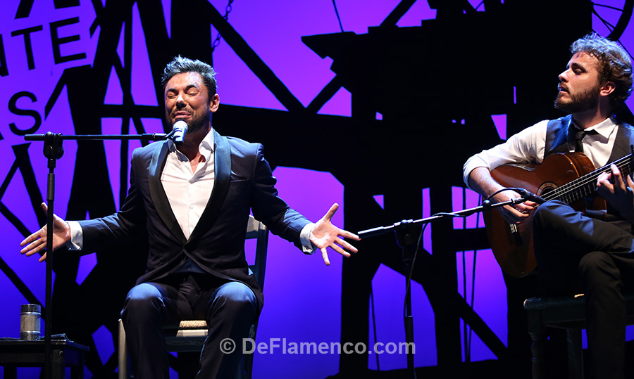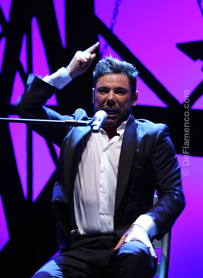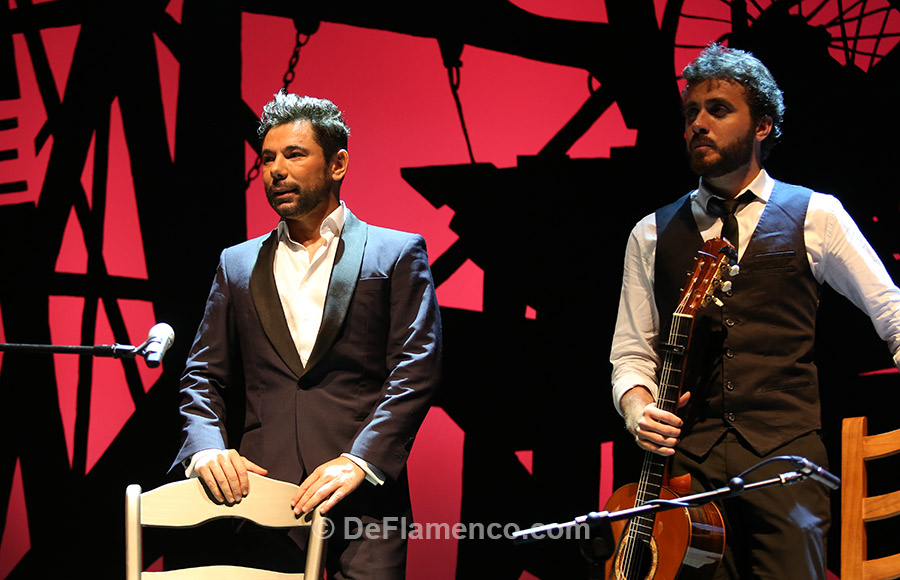 Acompañado por los músicos Juan Ramón Caro y Jesús Guerrero a la guitarra, Carlos Grilo y Miguel Ángel Soto “Londro” a las palmas, y Paquito González a la percusión, Miguel Poveda ha ofrecido un Recital de Cantes Flamencos por Malagueñas y Abandolaos, Alegrías, Bulerías de Cádiz, Soleás, Tientos y Tangos de Triana, una selección de Mineras (una escrita por él, la segunda “Quiero hacer fuerzas y no puedo”, de Encarnación Fernández, y la tercera de su maestro, amigo y artista con vocación, Pencho Cros, a capella), todas ellas dedicadas a su padre, Francisco Poveda. Proseguía con un repertorio de Lole y Manuel, una petición del público, “A ciegas”, para seguir por Bulerías y Fandangos.