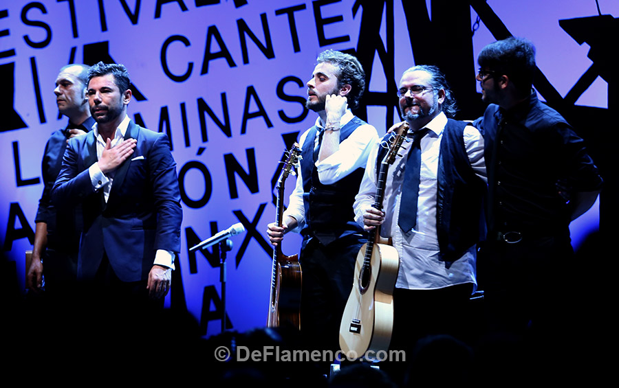 Uno de los momentos más señalados de la noche ha sido cuando se quedaba solo en el escenario, acompañado de la guitarra de Juan Ramón Caro, evocando la noche mágica en la que ganó la Lámpara Minera. Ese momento de nuevo ha sido especial: “hicisteis que me sintiera el Rey, protegido, lleno de amor y magia. Viví cosas maravillosas en casa de Pencho Cros, en el Vinagrero, con el Barbero, degustando un caldero en la casa de Diego… Y aprender y convivir con el escenario, que para mí es sagrado. Es un compromiso, y veinte años después ver que todo sigue igual y se me quiere y respeta, mi corazón se pone a dos mil por hora. Espero agradecer el cariño que me ha dado La Unión. Os debo una. Volveré”.