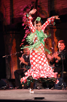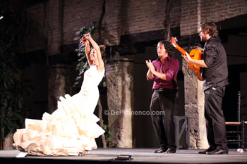 If the first week of the series at the Corral began with a bang, the closing night was for Olga Pericet, a full week of dance. We’re accustomed to seeing Olga in company, with Marco Flores and Manolo Liñán, but on her own she’s quite another thing. The extreme avant-garde line is put aside to apply her small figure to classic flamenco. The backup was provided by singers Mercedes Cortés and José Anillo, the guitars of Arcadio Marín and Antonia Jiménez, and Ana Romero on compás. The same words apply, no costly staging, no Lorca, just a dancer filling the whole stage, period. Who needs more? Pericet took on a stylized farruca, bigger than her own figure, with great care taken to keep the line. A similar approach was used in the siguiriya, although there she didn’t manage to connect with the audience. A cante solo allowed time for the Cordoban girl to slip into the bata de cola which she used to great effect, and the audience took note as was evidenced by the standing ovation and lengthy applause, and they’re the ones that lay down the law after all. They gave Olga their seal of approval. And so must I.