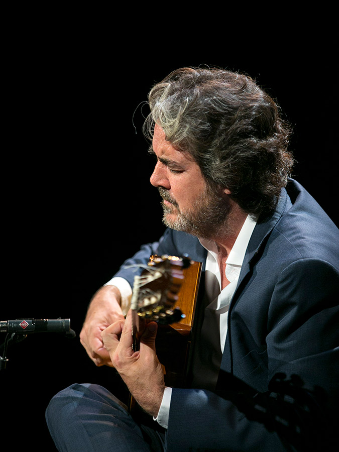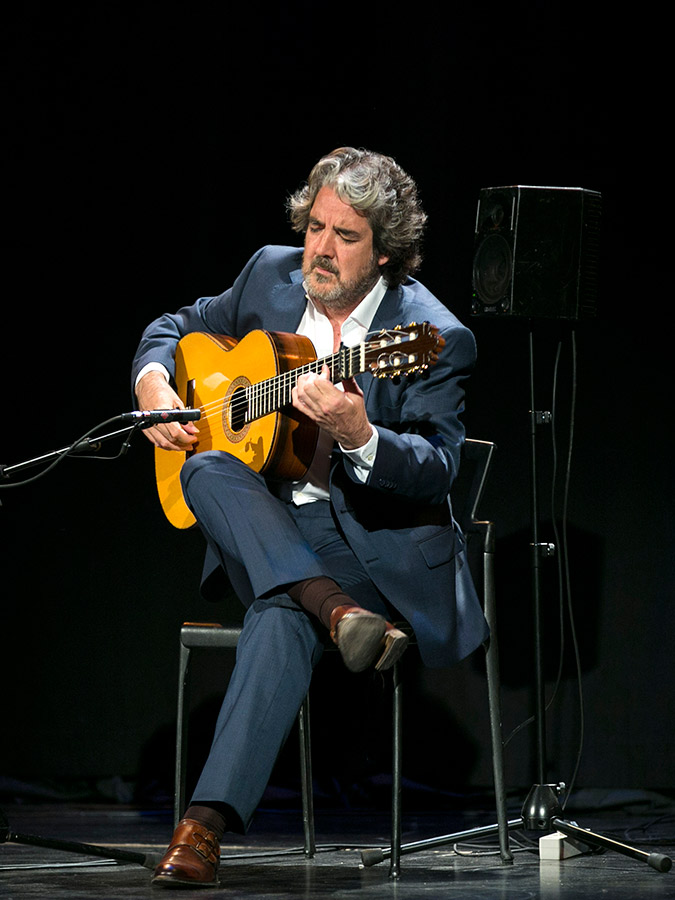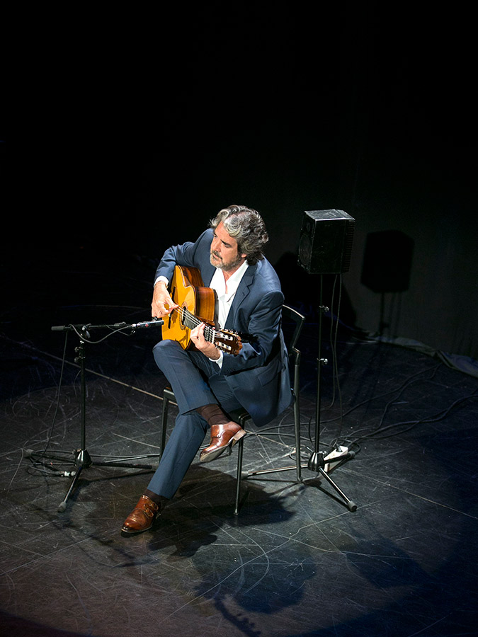 Thus, in the first part of the recital, we felt the tranquility of the taranta Alcázar de Cristal, the deep warm glow of the soleá A Canales, we were pricked by the rose-thorns in the alegrías Cogiendo Rosas, and we seek out peace in the rondeña Benamargosa. To continue enrapturing the mood, the guitarist took us to the Parque de María Luisa (the title of his latest record), and we fed the pigeons along with him, aware that only in this place do they seem beautiful. Then, the ecstasy of Amarguras, and a second part with bulerías, fandangos and rumbas in which he evoked the memory of Niño Miguel and Lole y Manuel, accompanied by Joselito Acedo.