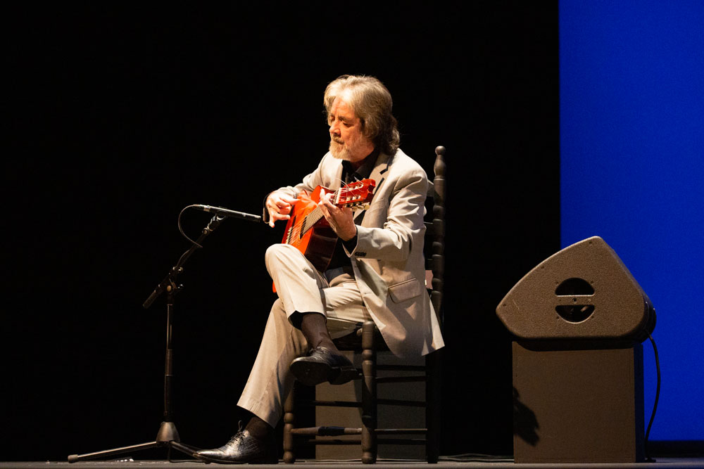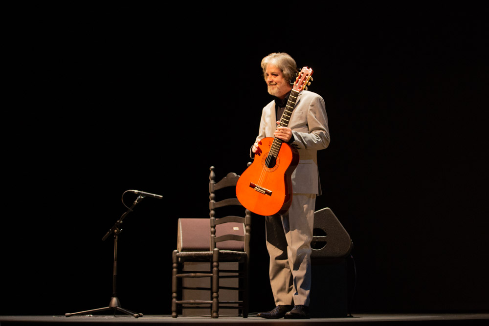 Como el tranquilizador beso de buenas noches con el que te arropaban de niño en la cama o los placenteros arrumacos escondidos bajo la mesa camilla aparecía este sábado la guitarra de Rafael Riqueni en el Théâthe de Nîmes para apaciguar el fuerte y frío viento del Mistral que nos helaba las pestañas. De esta forma, solo en el escenario sin más –ni menos- ofrecimiento que el de su sonanta sincera y pausada, el sevillano ponía fin a la 33 edición del festival francés con la misma entrega y entusiasmo que hizo en la clausura de la pasada Bienal de Flamenco de Sevilla.