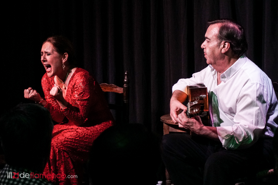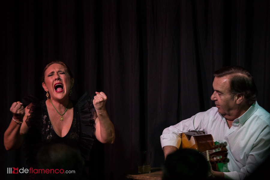 Salió Manolo Franco que hizo uno de esos acompañamientos delicados y sutiles, quizá la guitarra es la que más desconcierta a los oídos contemporáneos ante la ausencia de electricidad. La sala tiene sus peligros y puede desnudar al artista, Rocío pasó fatigas en la malagueña y siguió poniendo versos suyos a los cantes, claro que uno puede interpretar los versos nuevos malamente y así donde dijo naranja se me figuró “almeja” y la copla se quedó dudando entre la frutería y la pescadería cuando llegó el descanso y me sugirieron que me pasara por la peña Paco del Pozo donde estaba Cancanilla de Málaga, sólo hubo que bajar un piso para encontrase con el cantaor, si la García Lorca parece una capilla para los elegidos, la sala de abajo tiene un aire a cita clandestina… y en esas Cancanilla entona con la guitarra de J.A. Muñoz una de esas seguiriyas indescifrables en sus letras que te dejan temblando como una hoja ante un vendaval.
