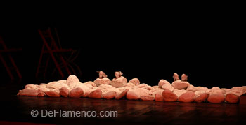 'Cuando las piedras vuelen' Festival de Otoño- Teatro Canal – Madrid May 27-30 2010 Review: Pablo San Nicasio “Rocío’s wings” She’s already one of the greats, and you hardly get to see her, like fine perfume that must not be squandered. Four days at the Autumn Festival (in spring), and once again you are aware that there is among us flamencos, an extraordinarily gifted dancer, artist and creator. The name of the game here is avant-garde flamenco, a role which this performer has taken on from the very beginning. And no need to become pedantic or feign praise. Fifty-five minutes during which the stage, in all its dimension, takes in the different little supports that give life to the incredible greatness of Rocío Molina. A dancer with soft curves and delicate strength, capable of filling the most demanding stage with her brilliance. From the concise presentation with voice and nearly nude dancing, the trip takes us through the various facets of the dancer. Feet on metal, arms upon air, figure upon a stool, flamenconess in the tangos, fiesta and alegrías and bulerías, frivolity with a cigarette in the mouth… never forgetting to wink at the classic school (very 18th century in some moves) with a contemporary constant that meshes seamlessly with the past. And always Rocío as nighthawk and prey, moving through the stages of an existence that strikes her with each cante. And what better accompaniment than the music of Cano. His most recent works, “Flamenco Crossover” and “Son de Ayer”, form the framework of the show, reinforcing our belief in this guitarist who along with Paco Cruz is the only masculine element of the group. There’s no fill-in. Rocío even gets dressed on stage. Led musically by a spectacular Rosario “La Tremendita”, the scenes meander from transcendental to bucolic, from primitive naturalness to the most cinematographic artifice, to end happily with the surprise of the unpredictable. The option of ashes to ashes and dust to dust, in this case stones, through a line of optimism is always something in which to rejoice. Especially if you’re not expecting it. An intensity that never lets up, everyone with their eyes wide open, competing with owls and nighthawks that preside over the various sequences. They say flamenco is a woman’s creation made famous by men. If that’s so, the mystery of dance and singing are the work of feminine spirits that are right at home in the nightspace created by the great Carlos Marquerie. Rocío is stone that flies and strikes blows. As they sang to her last night…”What sweet tyranny that of Beauty”. |