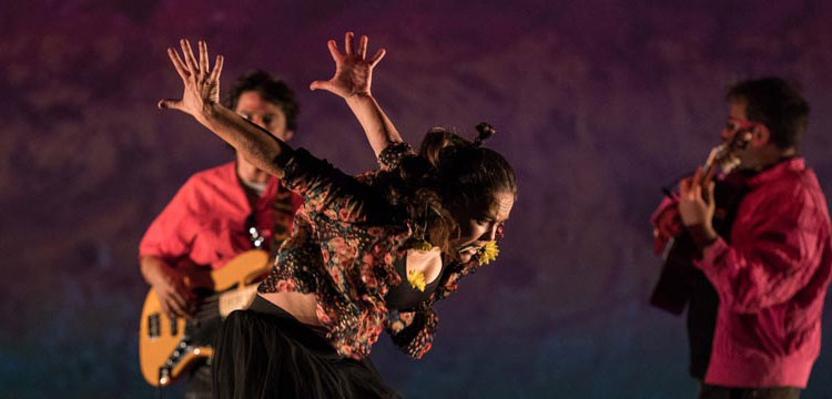 Rocío Molina aterrizó en Pamplona con su espectáculo “Caída del cielo” que lleva varias temporadas asombrando a la afición contemporánea y cosechando división de opiniones entre los flamencos. El punto de partida es el “omega”, unos segundos de electricidad por un cuarteto de rock que entona un fragmento a toda pastilla: “Asesinado por el cielo”. Luego aparece Rocío vestida de blanco; después, el silencio. La espera. Más silencio. Parece que algo se mueve…