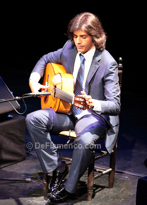 El tercero, traer a artistas que tengan cualidades y juventud reales, chicha flamenca donde agarrar. Que luego ya se verá. Con eso y las ansias de triunfo de los protagonistas, que son evidentes, seguro que el éxito se da. La noche del sábado tocaba turno a tres jovencísimas y diferentes concepciones flamencas: Juan “Habichuela” nieto, al toque. Tamara Escudero al cante y Selene Muñoz con los tacones. El más pequeño de los “Habichuela” lleva apuntando maneras algún tiempo. No sabíamos de su versión solista pero sí de su increíble flamencura y añejas formas cuando le veíamos con Enrique Morente, su principal trampolín. Anoche presentó cuatro toques en un formato genuinamente solitario. Algo que, de entrada, es encomiable porque lo normal hoy día en un guitarrista es buscar refugio entre la multitud. Solo “Bandolero” le llevó el compás, junto a dos palmeras. Aunque no hubiera pasado nada de no haber salido, porque el cajón se hizo empalagoso y demasiado potente en algunos pasajes. Arrancó con una original rondeña, algo tembloroso y sucio al principio, para ir asentándose y subiendo el listón en un impresionante trémolo de ideas muy similares a lo que tiene grabado el Maestro Sanlúcar en su “Oración”. Eso, y un pizzicato con solventes soluciones técnicas fueron lo mejor del comienzo. La soleá reafirmó lo añejo de la estampa de este Carmona. Guitarrista al que no le gustan las poses con la guitarra (su “look” es de por sí flamenco) pero que sin embargo consigue enganchar mucho al público. Juan tiene empaque, grandes ideas y condiciones, pero la soleá salió algo atropellada. De nuevo el ansia. Aún así suena nuevo, porque vuelve a unas raíces para la mayoría olvidadas. En las alegrías se desató definitivamente la locura. Reconocimos una melodía ornamentada, con melodías “paqueras” y a la vez recursos de la vieja escuela, como un picado a tres dedos francamente difícil y mucha potencia de pulgar, algo que se notó aún más en las bulerías del final. Puro fuego este Juan “Habichuela” Junior, sin duda lo más sobresaliente de la noche en cuanto a novedad.