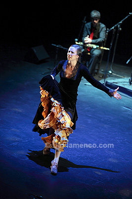 Tamara Escudero es una guapa cantaora de Castellón (otro Escudero flamenco “extranjero”). Con voz dulcísima, prácticamente idéntica a la de Estrella Morente, a Tamara la conocíamos por Madrid desde su aparición primaveral en la “Suma Flamenca”. El sábado, sin embargo, Tamara tuvo que pelear contra todo y contra todos. Llevó a Israel Jiménez a la guitarra, tocaor que demostró unas notables condiciones técnicas pero también mucha descoordinación para los cierres y finales con la cantaora, a la cual tapó en muchos momentos. Comenzaron juntos por soleá, a toda prisa. Las ansias, los afanes, subieron mucho el metrónomo y no se pudo paladear todos los registros del regalo que tiene Tamara en su garganta. En la taranta y cartagenera Israel se marcó una falseta con trémolo digna del mejor solista, pero el cierre improvisado echó todo a perder, y eso que la pareja se había serenado y Tamara lo daba todo. Fandangos y tangos de nuevo pusieron sobre la mesa las buenas condiciones de ambos, pero sus lagunas aún como dúo. Tiempo habrá. Como al primero de la noche, estamos hablando de gente con los mejores asesores a su alrededor. Además, la de ayer era una cita para aprender y sacar conclusiones sobre uno mismo de cara al futuro. La segunda parte puso en escena a la más “placeada” de la terna. La bailaora de exótico origen Selene Muñoz. La bellísima balear posee una formación que abarca tanto la contemporánea como la danza clásica, siendo el flamenco algo más secundario en sus formas. El flamenco más racial, se entiende, porque los conceptos básicos están superados para ella. Bailarina más que bailaora, Selene es capaz de hacer en cada movimiento una foto perfecta de calendario, una estampa de estética intachable.
